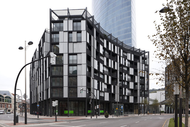 Abrazando la torre Iberdrola, en el nuevo centro financiero de Bilbao, se erigen los dos bloques de viviendas de lujo proyectados por los arquitectos Carlos Ferrater, Xavier Martí y Lucía Ferrater (Office of Architecture in Barcelona) y Luís Domínguez (Katsura Arquitectura y Urbanismo). Cada uno de ellos consta de planta baja más 8 plantas piso que flanquean la torre y quedan alineados en paralelo al Puente de Deusto, lo que le confiere a la obra un carácter emblemático propio de un emplazamiento singular como éste.