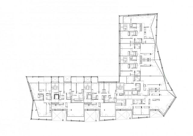 cuánto odio no? para ser un volumen de planta baja más ocho en que las plantas van variando está bastante bien solucionado, dejando a un lado que la fachada tiene su interés, sobretodo por la ligereza que consigue. No pasará a la historia de la arquitectura (ni me importa) pero el edificio tiene muchos puntos favorables y aquí se le está lapidando porque sí.