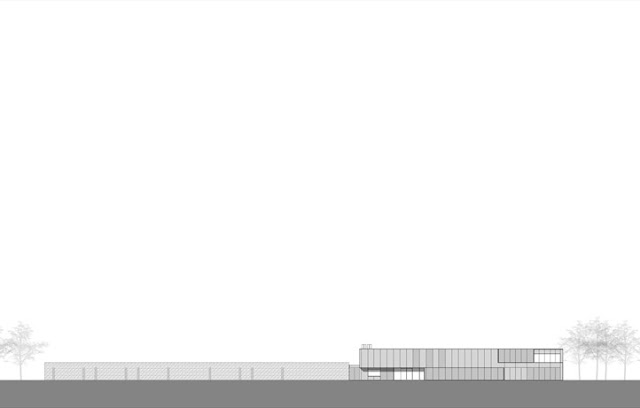 The Centre is embedded within the landscape, avoiding the ‘tabula rasa’ approach of many sports venues. Plugging a gap in the trees that surround the pitches, its massing minimises its impact on the site. The overall impression is one of horizontality, with changing rooms arranged in linear fashion at ground level.