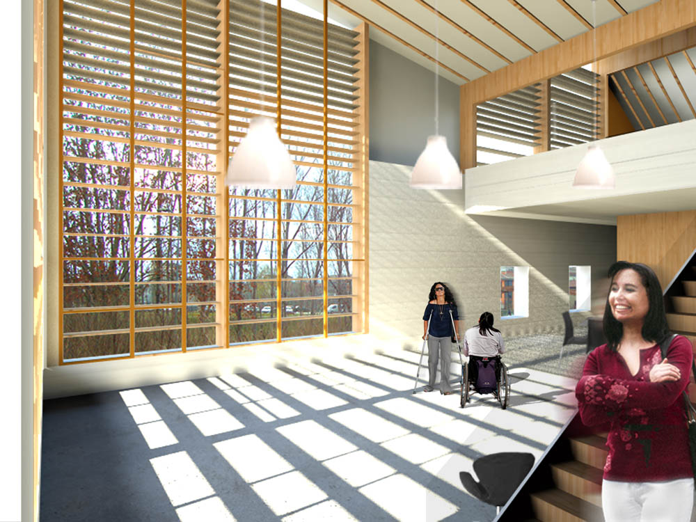 Actualmente el barrio está sufriendo un proceso de degradación importante. Por este motivo, se han hecho muchas propuestas de intervención en las edificaciones existentes para revitalizar esta zona extramuros. El hecho de situar el nuevo auditorio dentro del barrio ha llevado a la población a redescubrir el curso del río las adoberías. Aun así, hay un solar que también se debería considerar, ya que podría ser el punto de continuidad del tejido histórico que recorre desde la Plaza Mayor hasta la escuela de música. Por este motivo, y para una mejor integración de la población con disminución física en la sociedad y en la ciudad, es aquí donde se sitúa la nueva propuesta.