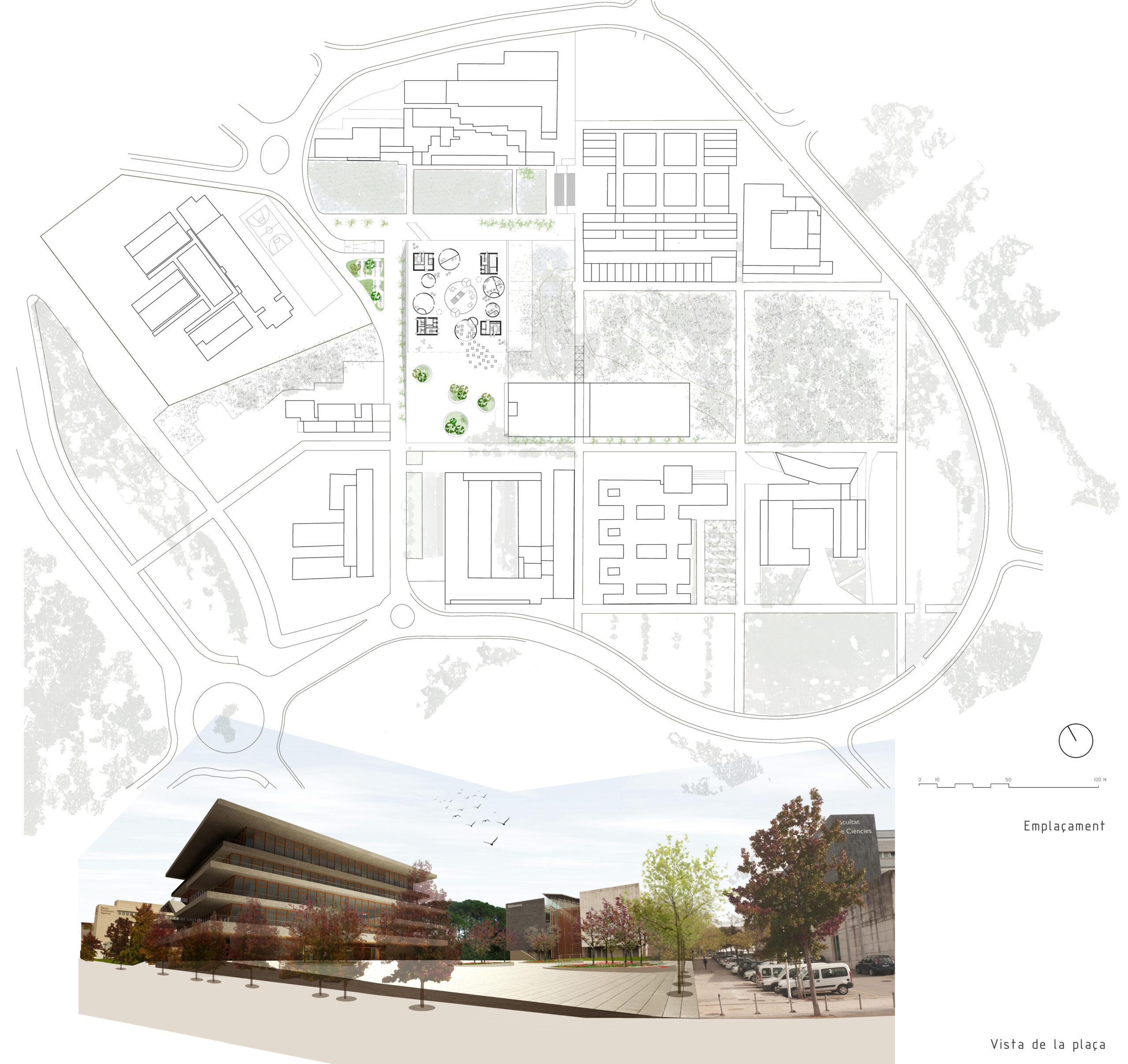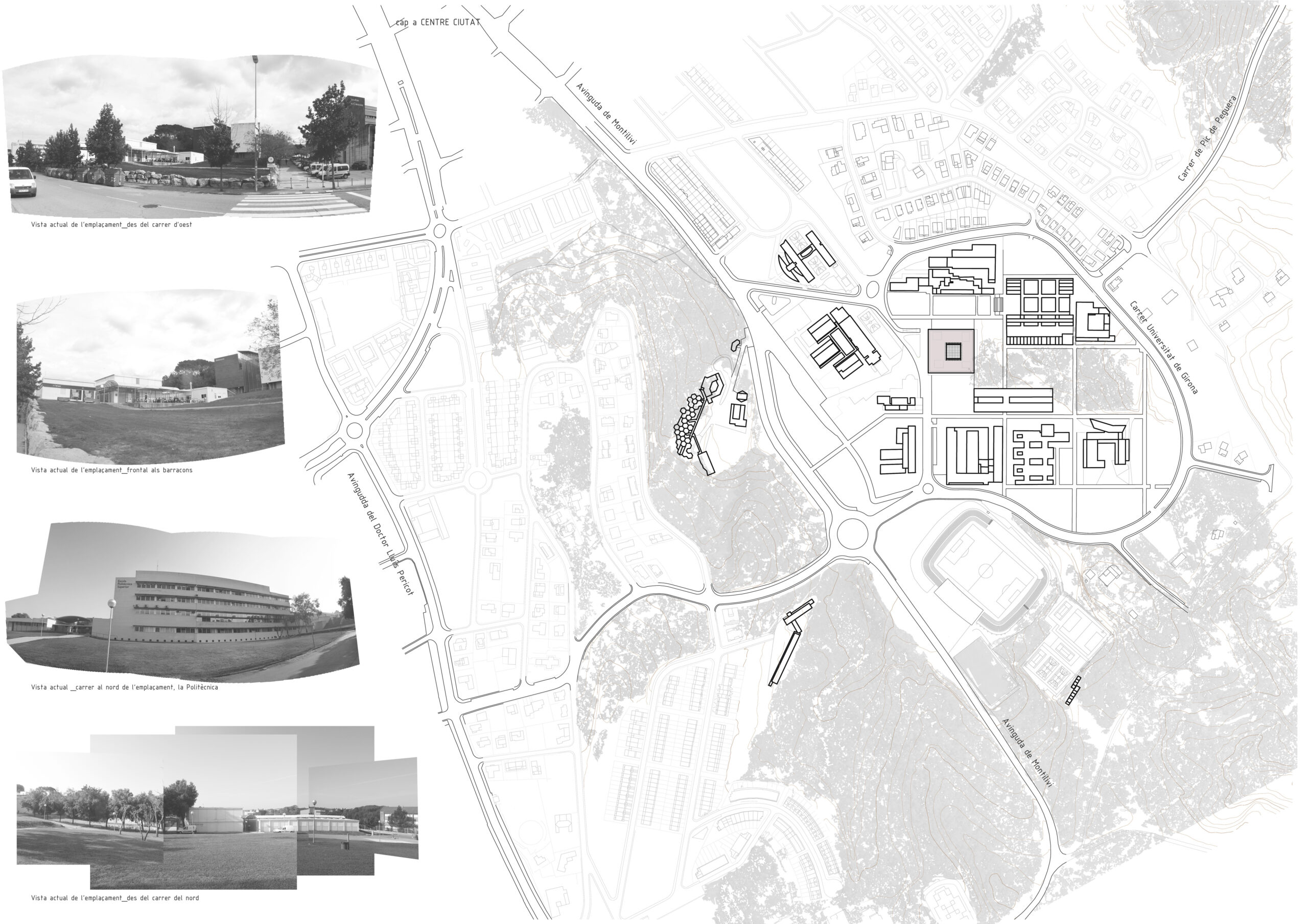 Es tracta d’un projecte molt interessant, amb una composició de la planta i distribució del programa molt estudiada. El grafisme i les maquetes son molt atractius. Però al igual que MPC, com a estudiant de la UdG penso que el gra de les peces que conformen l’entorn ha de veure’s reflectit en la peça central, que malgrat deixar la circulació lliure en planta baixa, viusalment és molt monolític i contundent, i crec que més que afavorir dificulta la relació visual entre els diferents edificis que composen el campus. És una simple opinió, de totes maneres segueixo pensant que l’edifici en sí mateix, és un molt bon projecte.