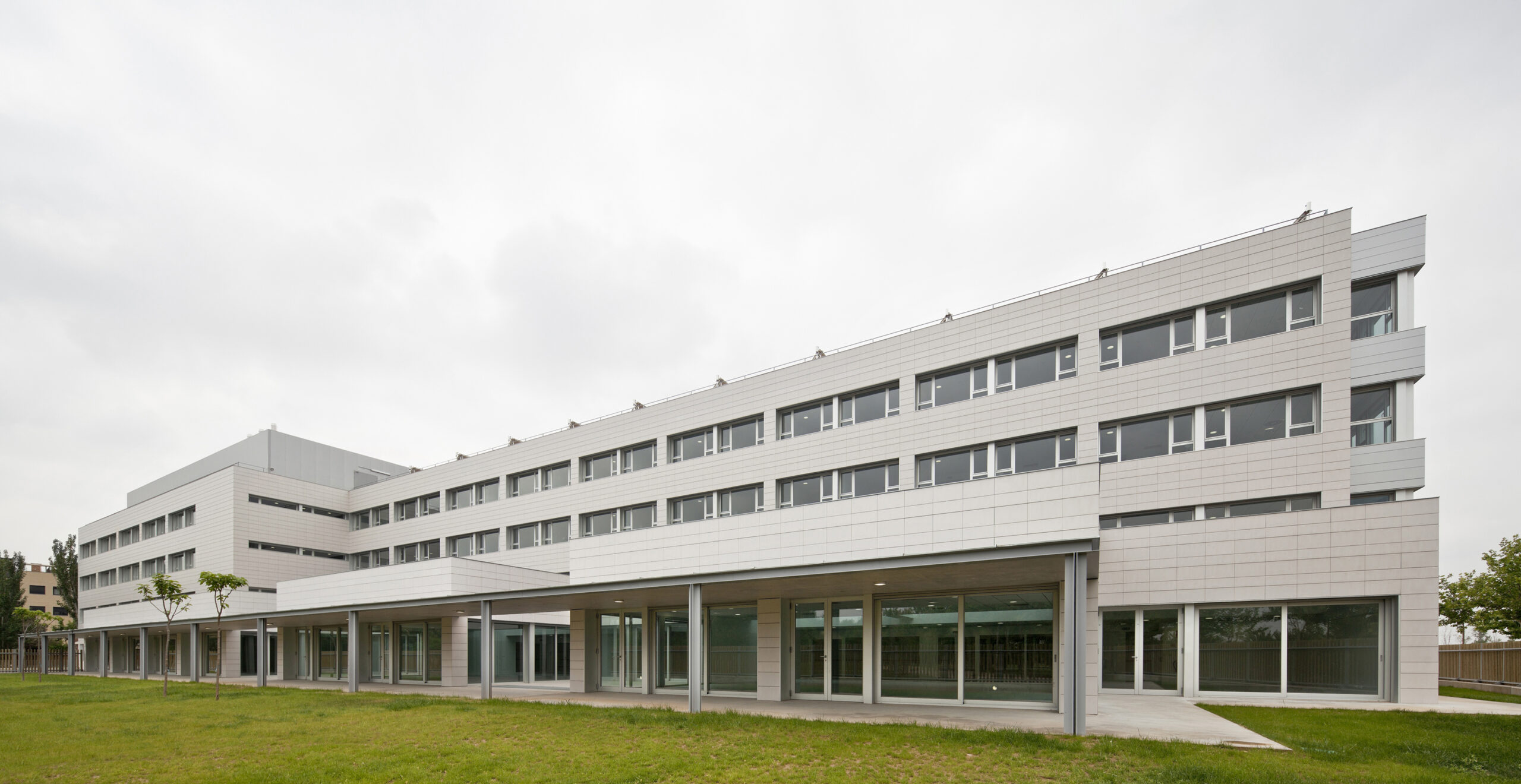 El revestimiento de las fachadas está constituido por piezas cerámicas blancas que definen una fachada ventilada que proporciona una correcta inserción en los tonos generales de la zona. La mayor parte de los huecos de las zonas comunes y de las habitaciones, están protegidos por persianas de aluminio orientables eléctricamente, lo que permite un ajustado control del asoleo en el interior del edificio.