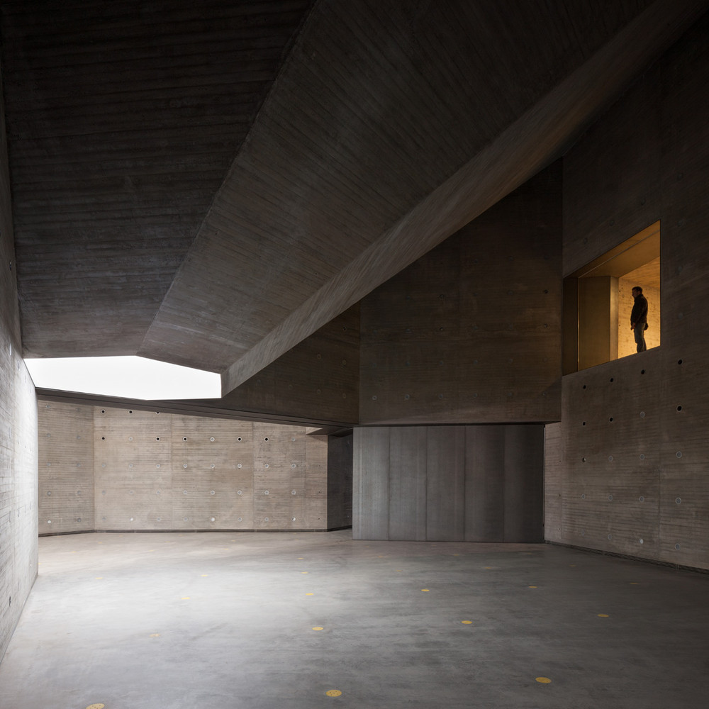Outside, the building aspires to express itself through one material: GRC prefabricated panels that at the same time clad opaque and perforated façades, or make up the flat and sloping roofs of the halls. The industrialised concept of the system as well as the conditions of impermeability, insulation and lightness of the material, contribute to guarantee the precision and rationality of its execution but also plays a part in the combinatory concept which governs the whole project.