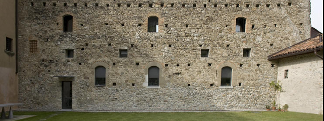 Two opposing aspects, the desire for shelter and the desire for openness, are put into a new balance in the project. In the oblong volume the perimeter wall has been preserved, while the more recent internal structure has been completely demolished. This permits insertion of a new exposed concrete construction inside the medieval enclosure. The resulting theme is hat of the house within a house. A new equilibrium is created based on the confrontation of the two strong, precise structures, which establish a dialogue.