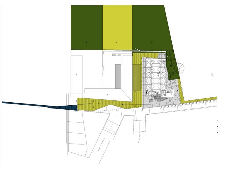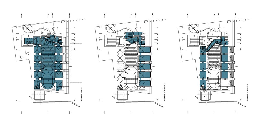 Otro reto planteado consistía en mantener la unidad y dimensión de la nave de la iglesia a pesar que se tenían que construir volúmenes para nuevos usos y requerimientos que nunca había alojado la iglesia: escaleras para subir a las plantas altas, lavabos y salas de instalaciones. Para preservar la lectura de espacio amplio y unitario del interior de la iglesia, estos volúmenes se han situado, en parte, en el exterior del edificio o se han resuelto en el interior de manera que se mantenga la visión de espacio unitario, en toda su dimensión, tanto de la nave como de la capilla principal.