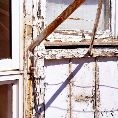 El sol quema y destroza la pintura primero, y la madera después. Como una berenjena perdiendo su tersura las carpinterías de madera se agostan.