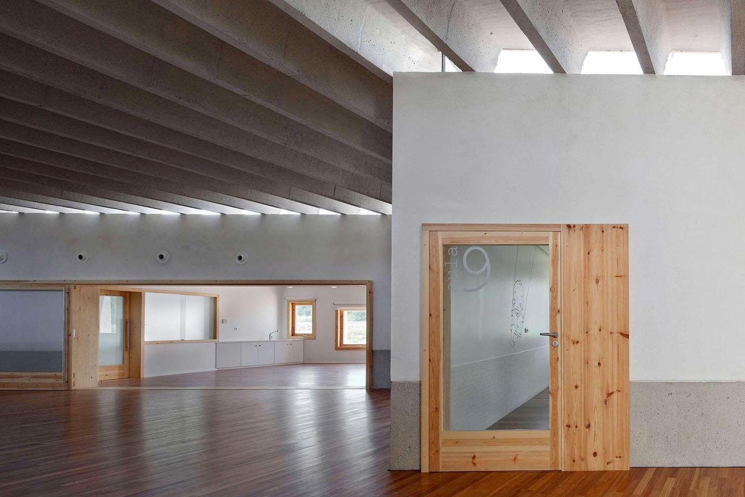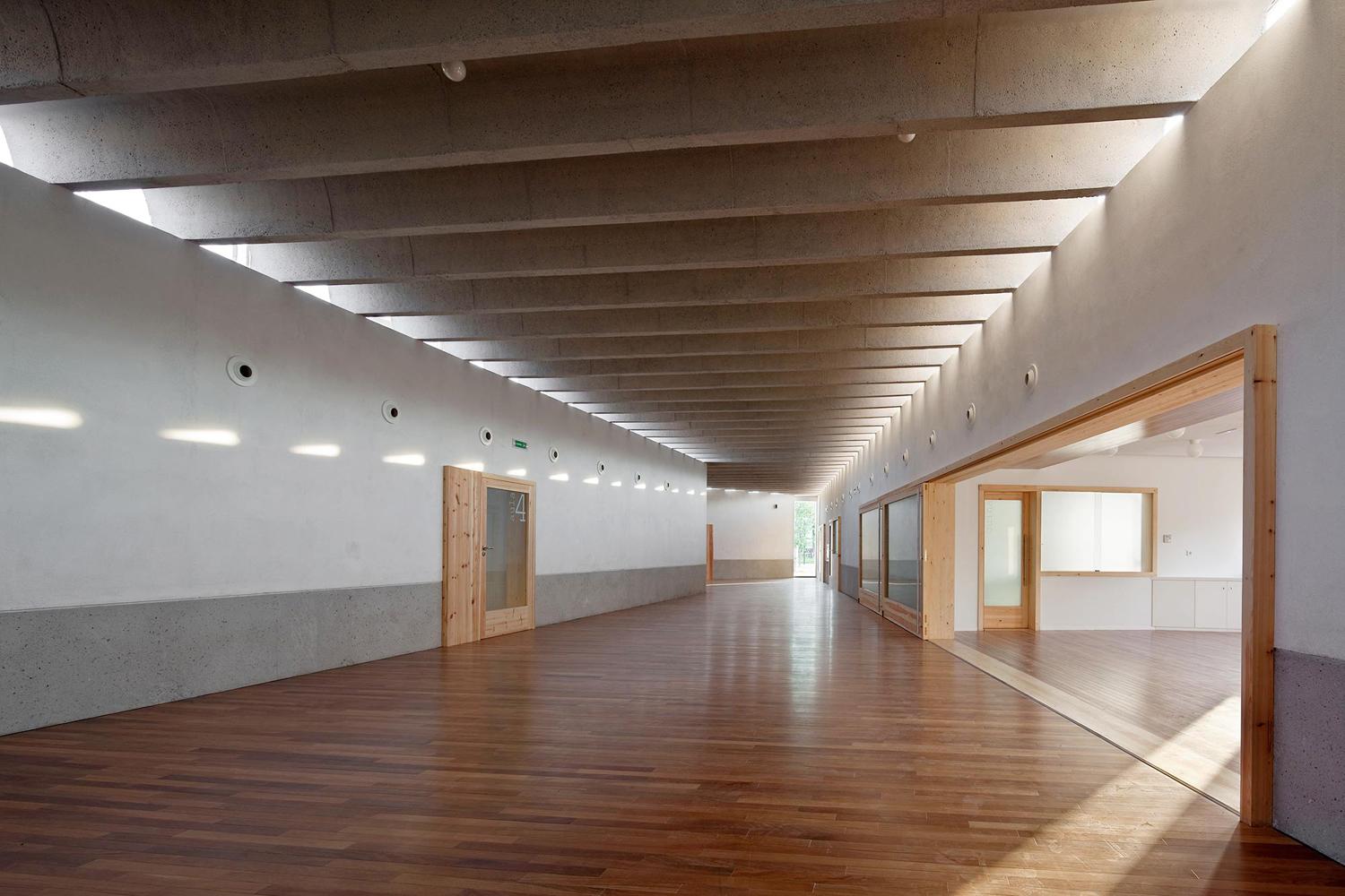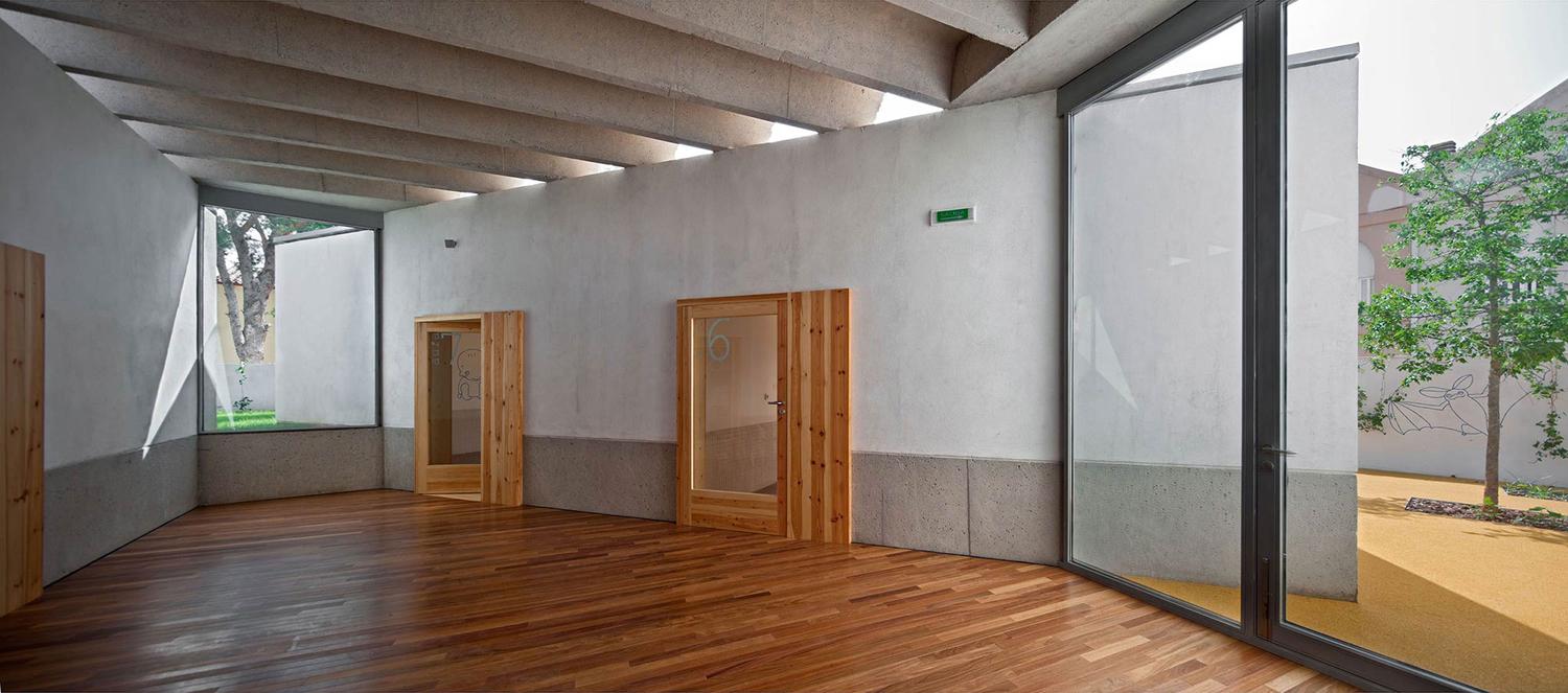 A mi me gusta creer que la fachada asimila el juego de desencaje de volumenes en planta y lo recrea en alzado con estas aberturas de dimensión y profundidad aparente variables. De esta manera la fachada se define entre una línia de “cornisa” continua y la del pavimento plano, un atributo que también me gusta creer que refleja los límites longitudinales del solar. Quizás no es como pienso, pero sí creo que la fachada entiende que el espacio a la que se ofrece es estrecho y debe aportar algun tipo de calidad espacial, algo que creo que consigue. Por otro lado, la disposición distinta del parquet segun la sala o el hecho que la compartimetación no interrumpa la continuidad en la cubierta, son características que atienden al conjunto y a las partes. Así, otra vez me gusta creer que todo es parte de la intención de ofrecer distintos espacios que sigan perteneciendo al conjunto, sin excepciones. La reseña del proyecto ya lo explica, ahora que lo leo… Felicidades por el proyecto!