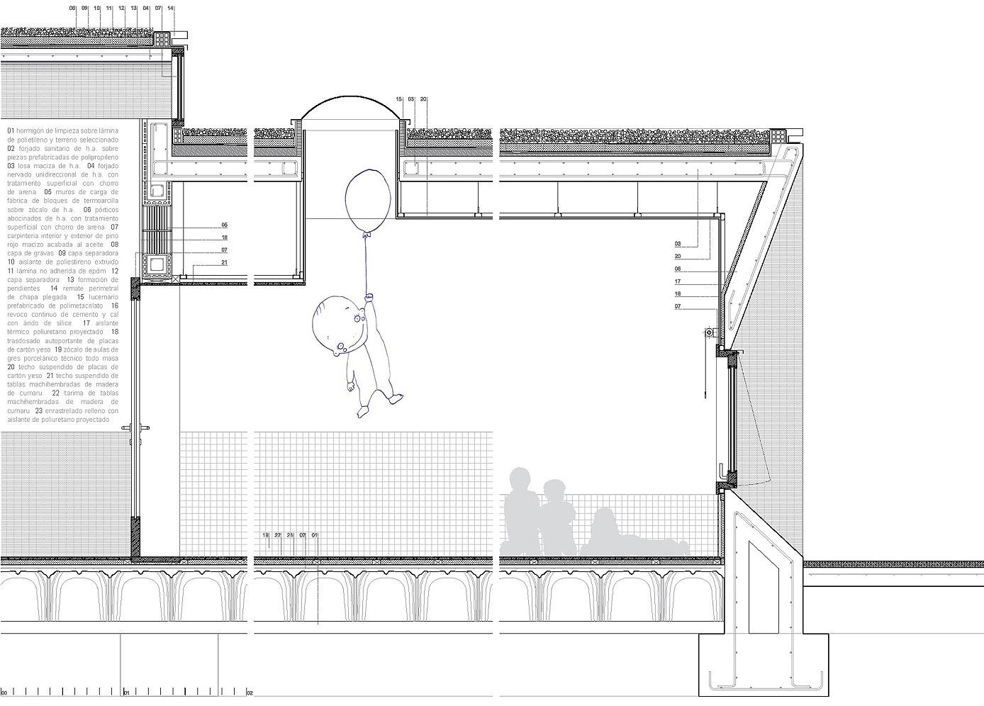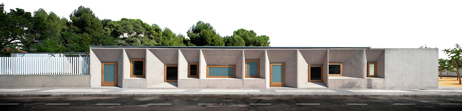 Coincido completamente con sep. A mi me atrajo de este proyecto (y por esto se ha publicado) la manera en que la disposición de los volúmenes de las aulas construye un espacio colectivo de calidad (cualificado por su geometría, etc). La fachada, sin duda de un gran valor plástico, no me interesa tanto porque siento que no acaba de encajar con el tema de proyecto.