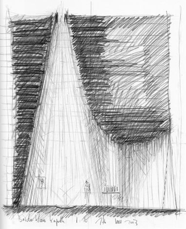 Esta pequeña capilla de Zumthor ha sido ampliamente publicada, tanto en su estado “final”, como en su especial proceso constructivo, con lo que aquí puede que tenga sentido una explicación más ligada a la experiencia de la visita que al propio proyecto.
