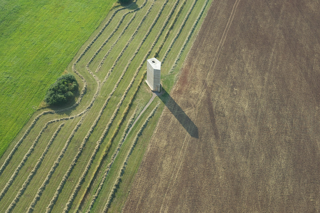 La capilla es visible ya desde la distancia. Su colocación en medio de un campo, alejada del pueblo más cercano, hace que para llegar a ella haya que andar durante unos 20 minutos. Durante el recorrido, es posible distinguir la capilla a lo lejos gracias a su altura; y su especial geometría en planta hace que, dependiendo del punto de vista, a veces parezca más esbelta, y otras más ancha.