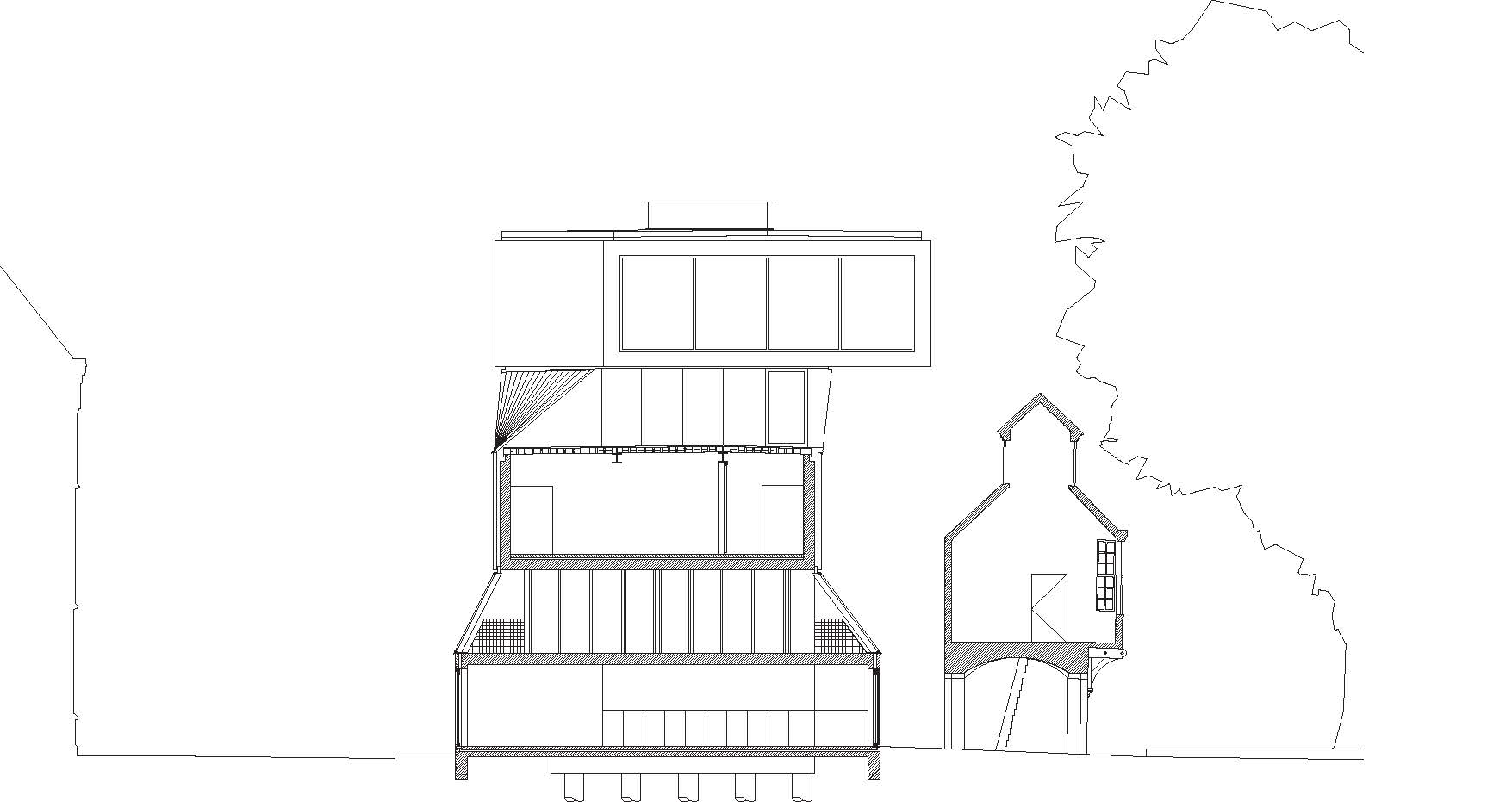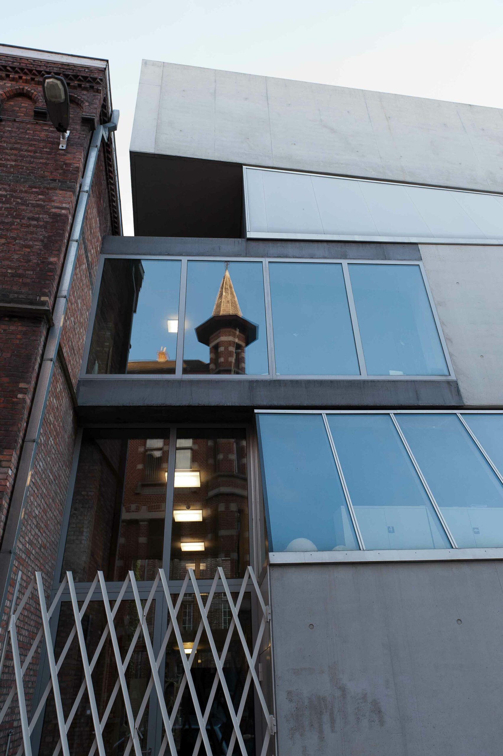 The piling up of the volumes settles all the bulding regulations and the insertion in its regulars context. Two workshops have a double heigh and mezzanine floors inside, the top one a single heigh. Each workshop has closed wall on its lower level as a work surface. The walls function as beams spanning from one core to the other in order to get workspace without internal structural elements.