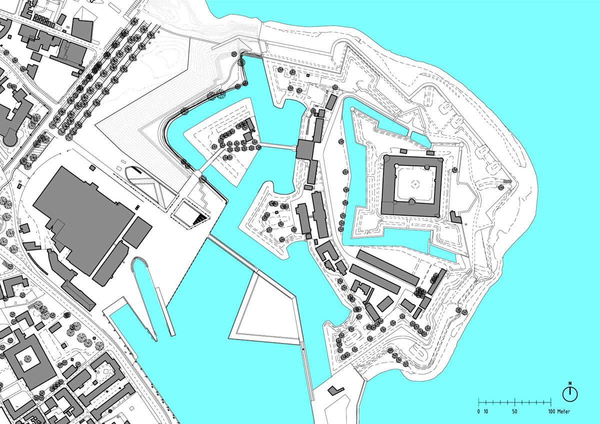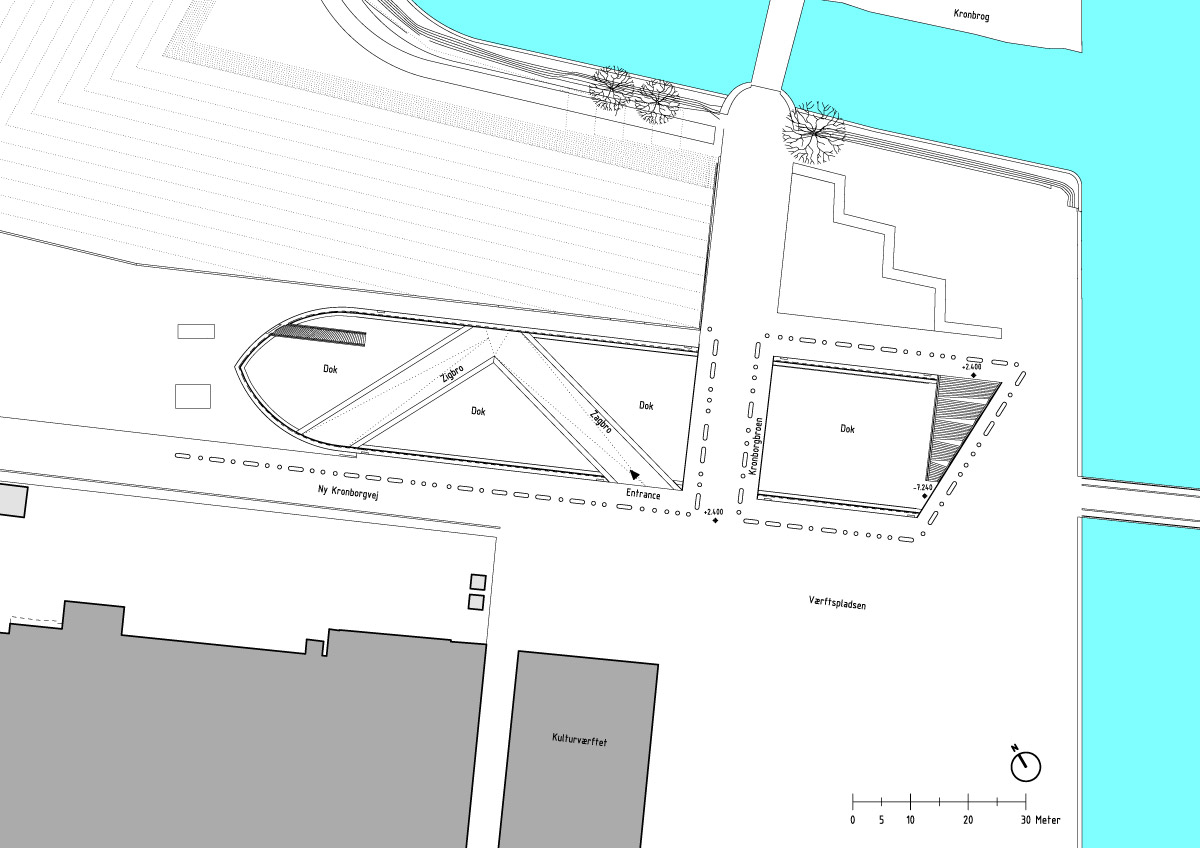 Leaving the 60 year old dock walls untouched, the galleries are placed below ground and arranged in a continuous loop around the dry dock walls – making the dock the centerpiece of the exhibition – an open, outdoor area where visitors experience the scale of ship building.