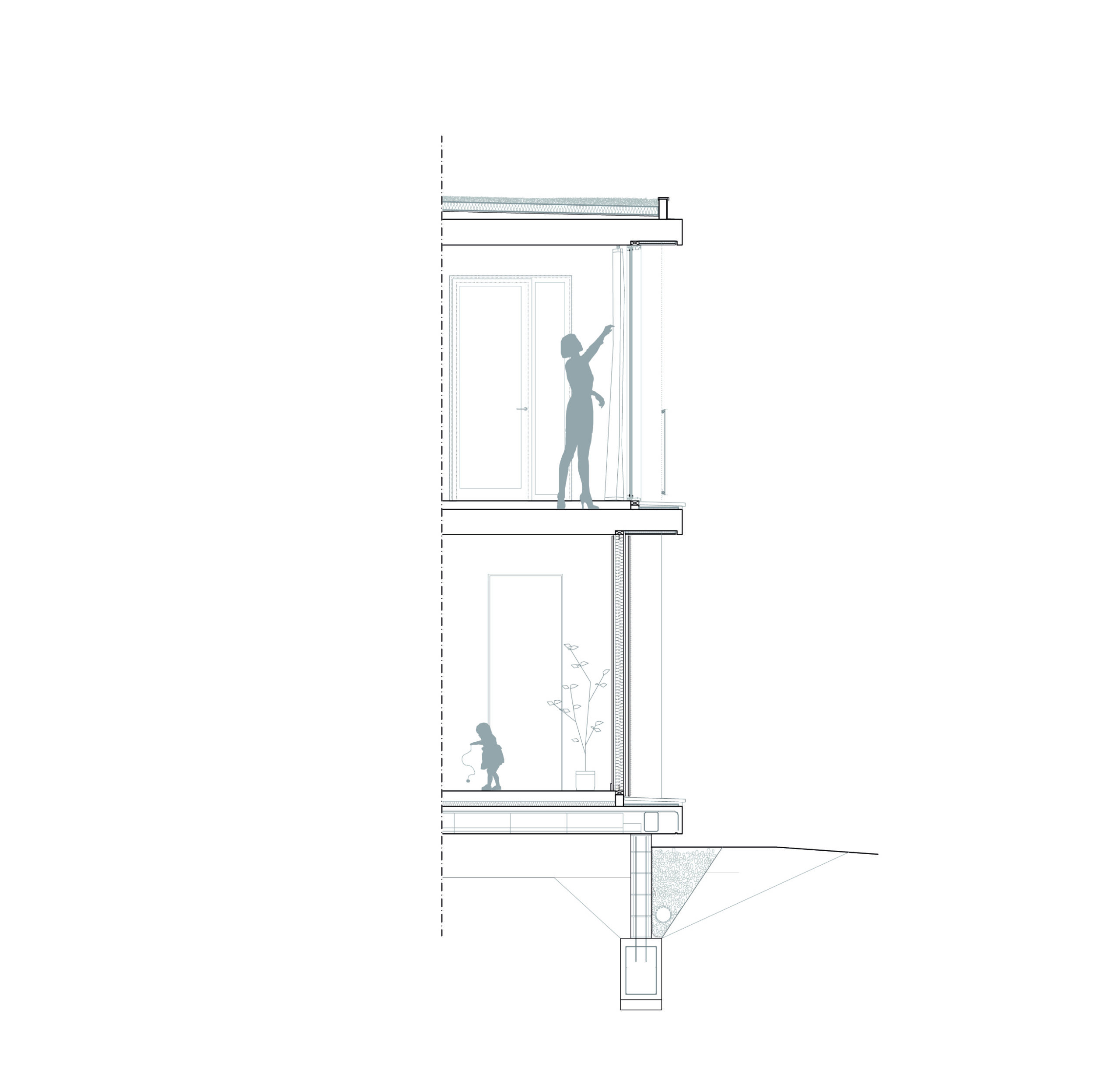 Las galerias se orientan a Este y Sur y garantizan un alto nivel de captación solar, así los espacios pueden funcionar de dia y en invierno sin climatización, a su vez actuarán como cojín térmico para los espacios de confort. De noche las cortinas reducen las pérdidas y una estufa de lenya permite el uso de los espacios. Este funcionamiento permite que la casa no se enfríe en los períodos que está vacía. Las cajas, altamente aisladas, estancas y sin inercia sí que son climatizadas con un sistema de bomba de calor aerotérmica que permite un calentamiento muy rápido de los espacios de uso cuando los propietarios llegan después de un largo periodo de ausencia.