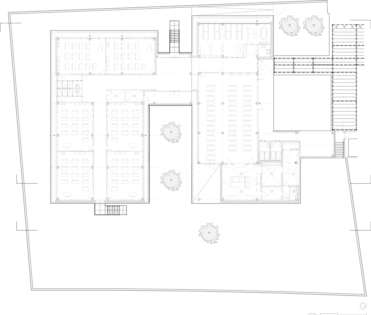 Una membrana dura, desnuda y translúcida de bloques crea condiciones de comfort óptimas mediante variaciones sencillas, configurando patios, porches, galerías y velos de intimidad. Este grosor climático no solo negocia con los rayos del sol, sino con todos los posibles agentes atmosféricos, para que los niños aprendan de cada cambio de tiempo. La escuela es un edificio pasivo poroso. Se basa no en la conservación de energía, sino en un intercambio sabio de la misma, más adecuado a los ciclos estacionales mediterráneos.