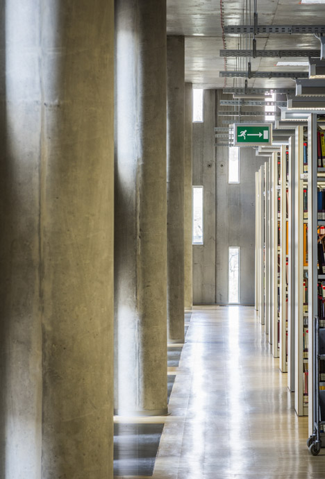 Students enter the library through a three-storey-high atrium, which leads to reading rooms, group study areas, conference rooms and individual workspaces amongst the bookshelves.
