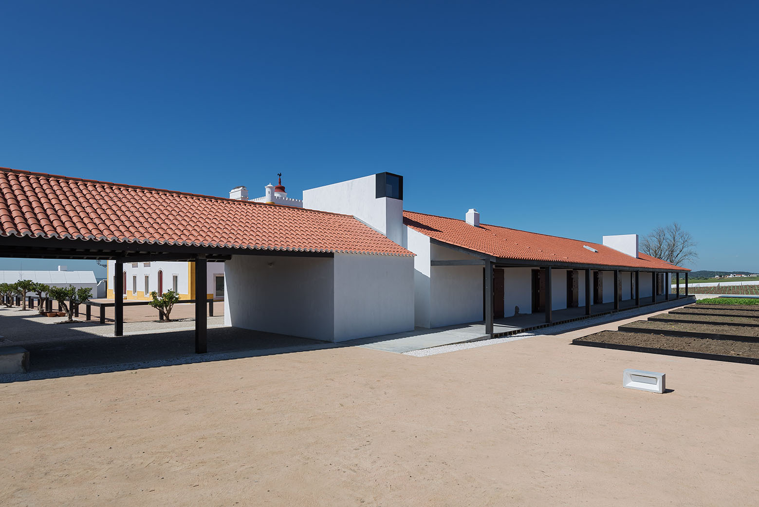 In the landscape of the great lowlands of the Alentejo region, the Torre de Palma estate includes an extent of agricultural fields and a sizable group of buildings confined on the southeast side of the property. The project for the installation of a Wine Hotel in this particular environment aimed to respond to the new functional program while respecting the architectural and morphological features of the built aggregate and its surrounding landscape. The intervention included both the repair and remodeling of the old farm buildings and the construction from scratch of a new set of buildings, based on precise gestures, respecting the lands’ exceptional features.