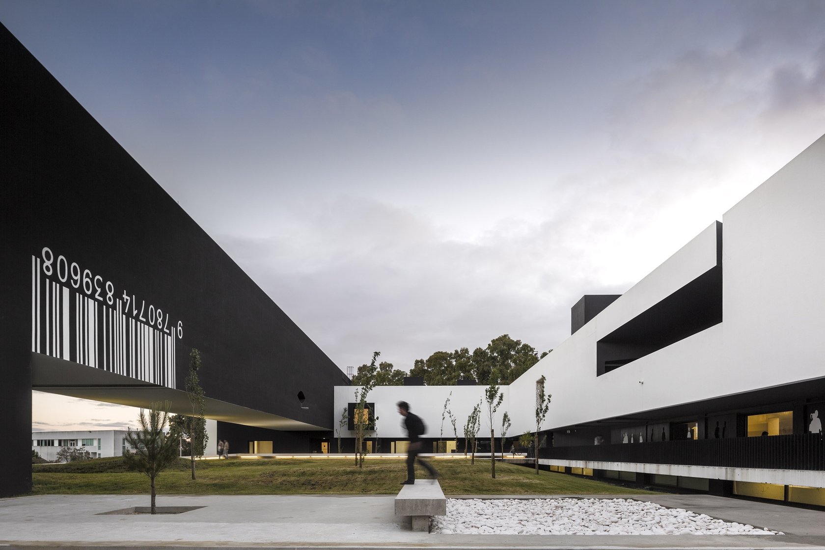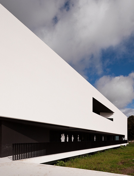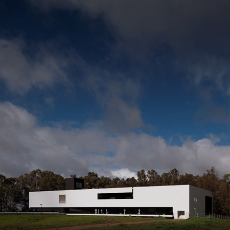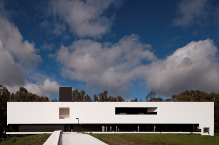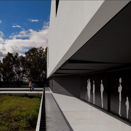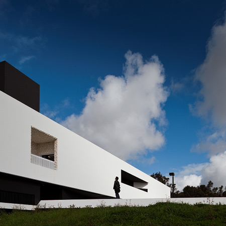 The key feature of this building is a massive portico that floats over the university gardens. The structure arises from the combination of the two programmatic requirements. The need to create a corporate iconic image, and the inclusion of a set of amphitheatres. The result is achieved in one of the largest existing concrete porticos. In an article published in the New Yorker Design Magazine, CC Sullivan wrote: “Montenegro’s architecture it’s a bit surrealist, perhaps Giorgio de Chirico with a dash of M.C. Escher (…) concluding “the building never fails to create opportunities for reflection. The theatricality and grandeur are unmatched (…)” The project started in 2003 and finished in 2013. The School is located in the Campus of the Polytechnic Institute of Beja, in Portugal. The portico, over 50 meters long, was built using advanced prestressing techniques applied to reinforced concrete structure.