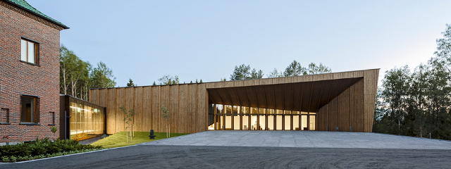 El proyecto se conceptualiza como un bosque abstracto y denso. Un bosque que se representa y se traduce en una serie de marcos paralelos de madera que definen la geometría y estructura del nuevo edificio. El patrón de marcos estructurales se construye con madera laminada de abeto ya que es un material abundante en la zona y a su vez hace referencia histórica de la industria local.