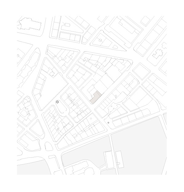 These two adjacent constructions are reconciled in the way that the new building absorbs a number of spatial and volumetric elements, like the podium, arcade and facetted tower forms of Saugey’s building, and continues the street edge and tri-partite ordering of the Ecole Ménagère. In this way, like a puzzle assembled from a number of building blocks carefully placed together, a new building emerges, specific to its place in the city, yet seemingly universal in its urban character.