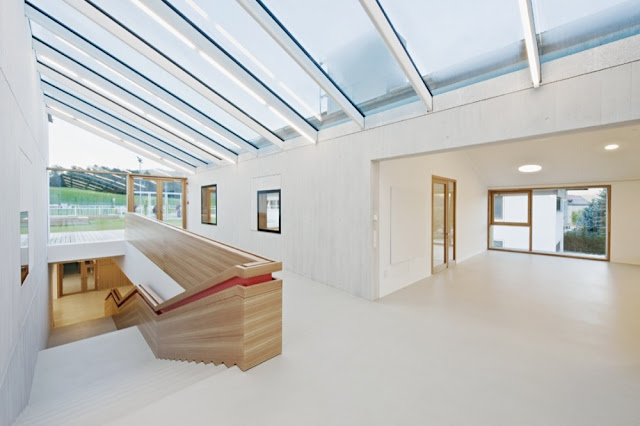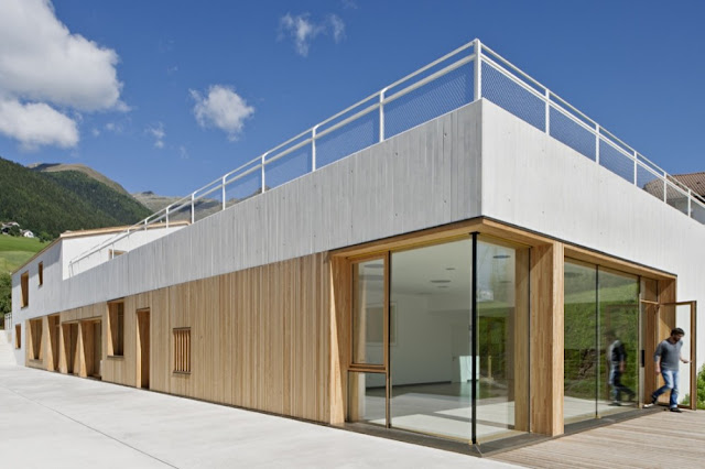 La escuela infantil, del estudio austríaco Feld 72, se encuentra en Terente, un pueblo de montaña al sur del Tirol, en Italia.