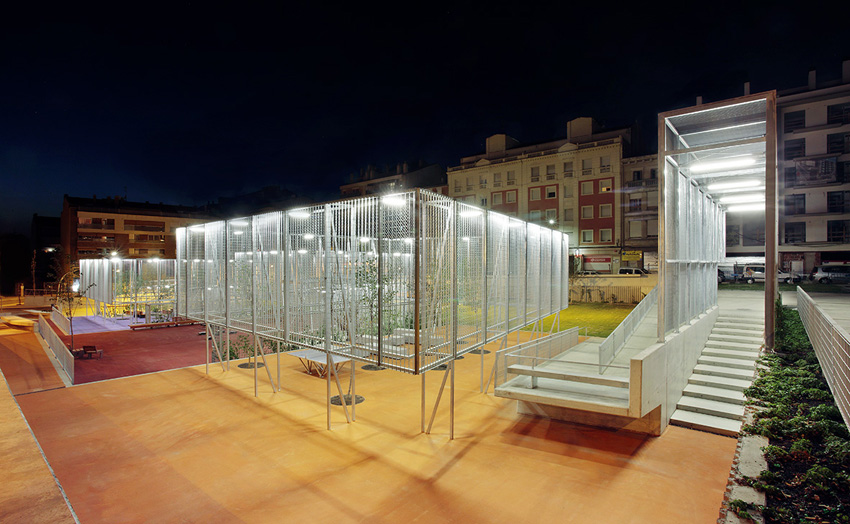 De nit, els umbracles i les pèrgoles esdevenen grans pàmpols que il.luminen el parc.