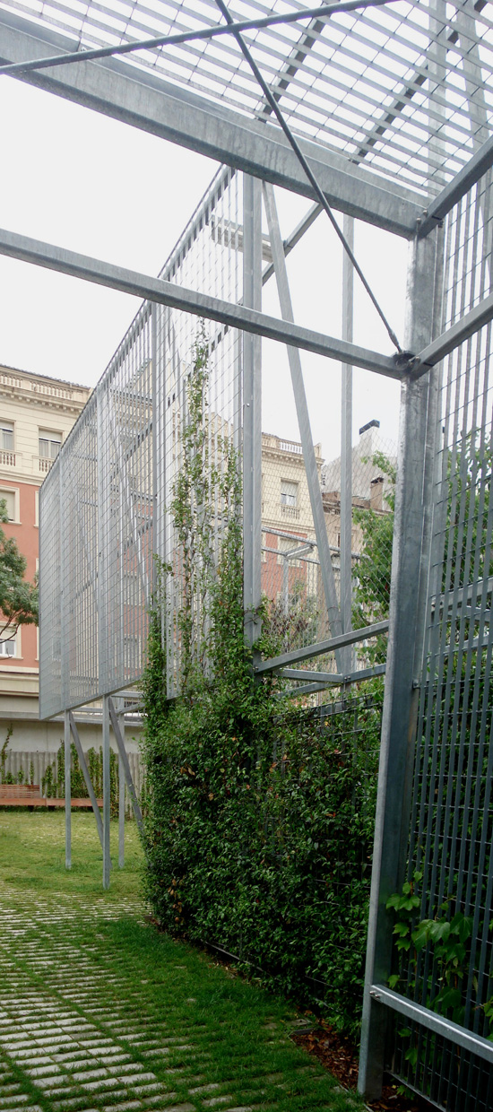 Els umbracles i les pèrgoles consisteixen en unes estructures tubulars d’acer galvanitzat recobertes per malles metàl.liques l’objectiu de les quals és conduir i donar forma a la vegetació.