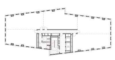 El edificio queda alineado a la Rambla del Mèder y a la calle Pellaire Dulcet, y alineado y retrasado 8m respecto la calle del Hospital d’en Cloquer. En la fachada este se define una inflexión sobre el nuevo espacio de peatones entre los dos edificios.