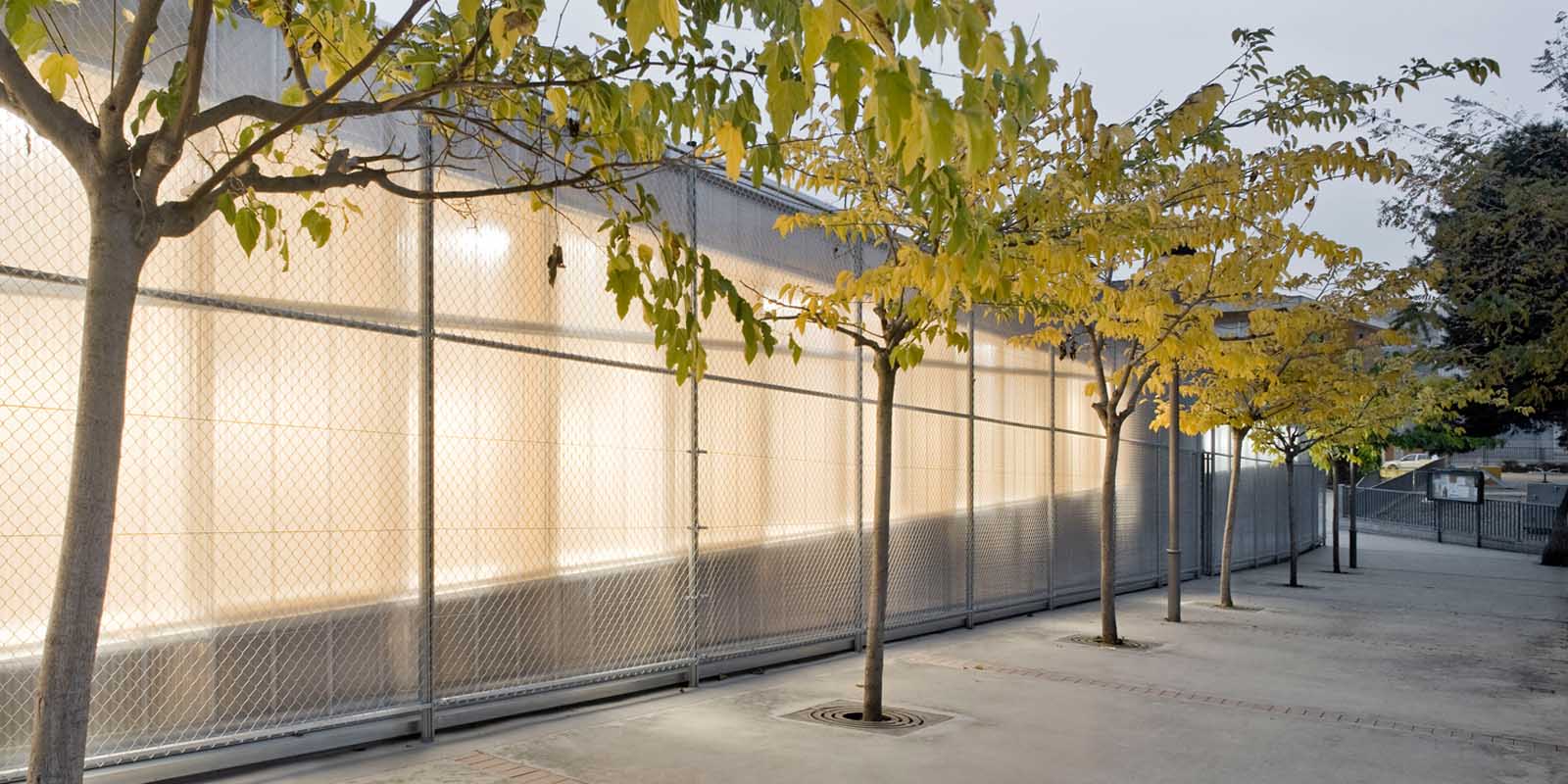 El revestimiento exterior se realiza con paneles de policarbonato, que contribuyen al ahorro energético en fachada sur y aportan luz a la fachada norte.
