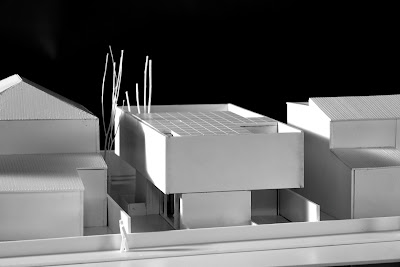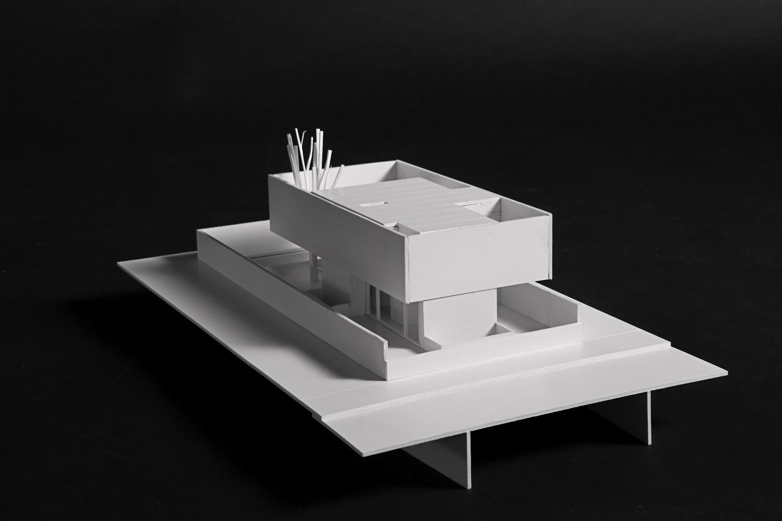We propose, after all, to solve and clarify the question, by widening to the maximum the inhabitable premises in their global scope, both in the vertical and horizontal referentials, in both interior and exterior. The building has been thus structured in three floors, spatially related in profile, each level having specific and different characteristics.