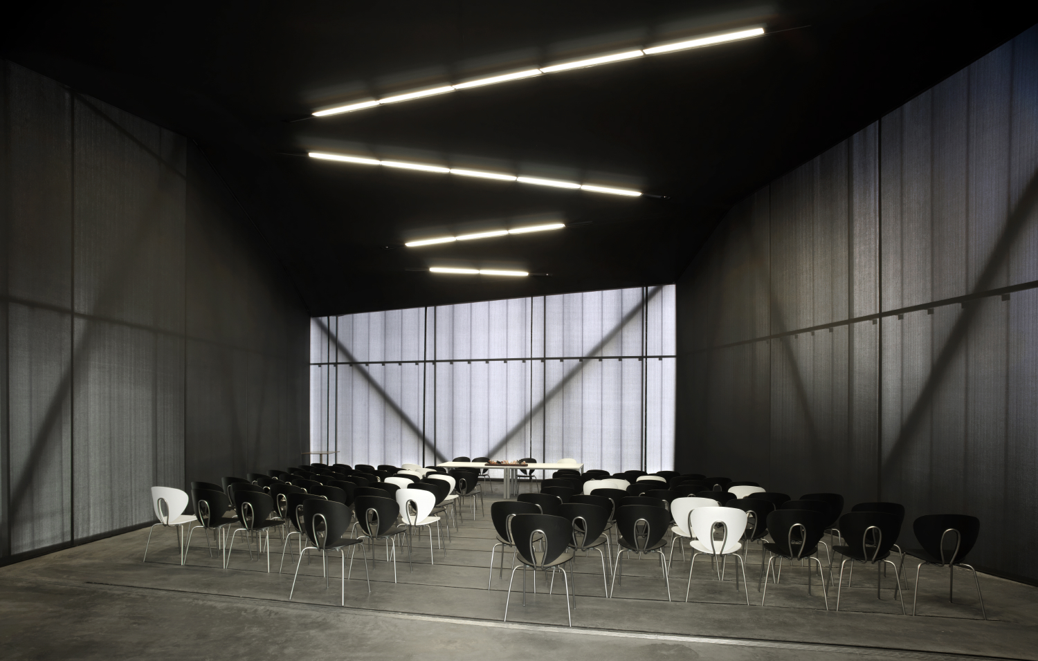 La investigación en estas piezas, donde la geometría alternativa a la ortodoxa nave rehabilitada se basa en las progresiones y crecimientos de las viñas y los padrones de los viñedos, no es sólo estructural, material o formal. En esa idea de piezas-burbuja, grano de uva, hechas de pieles (ollejo) y capas envolviendo la sala (pulpa) la climatización consiste tanto en el sombreo de las piezas mediante la celosía estructural como por la adecuación térmica de esa epidermis, insuflando aire exterior ligeramente tratado entre el policarbonato y las lonas de urdimbre de pvc para controlar la temperatura de las salas. Existe además un refuerzo de suelo radiante frío-calor que permite adaptarse a las extremas situaciones de temperatura exterior y usos esporádicos del edificio. Esto permite reducir al mínimo las frigorías artificiales aportadas, así como ajustar económicamente la instalación. La iluminación mediante tubos de bajo consumo apoyados con focos de leds permiten que el gasto energético sea mínimo.