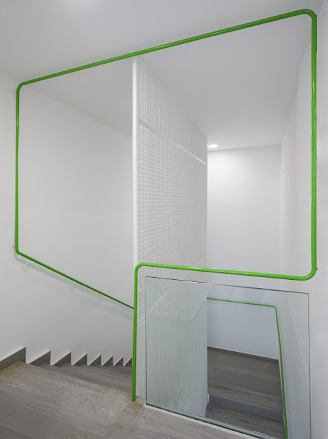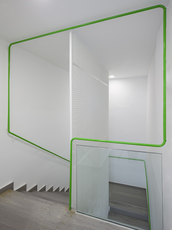 Una tercera operación, envuelve el edificio en una delgada piel reguladora, generando un colchón térmico que al mismo tiempo limita la visibilidad desde el exterior sin interrumpir la mirada hacia fuera.