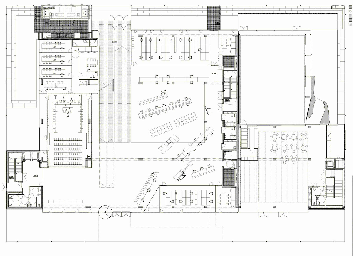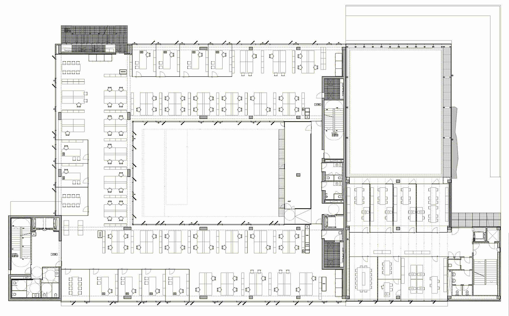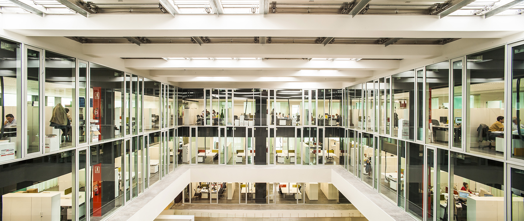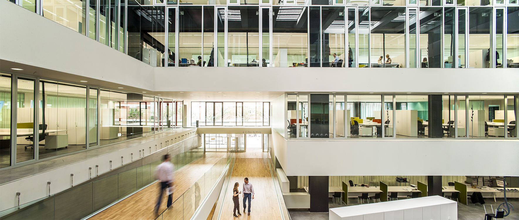 Dos condiciones programáticas divergentes resultan decisivas a la hora de afrontar el proyecto: cómo organizar un edificio donde predomine (en un 70%) un espacio de oficinas estándares de características “indeterminadas” y que integre los requerimientos de máxima flexibilidad programática, y al mismo tiempo conseguir que los espacios específicos (30%), tengan unas especial relevancia y sean capaces de dotar al edificio de una “alta representatividad”. El proyecto se desarrolla con la intención de proporcionar una máxima intensidad de uso al edificio, y de conferirle una gran permeabilidad y transparencia en la planta baja, en contacto directo con un espacio público con un espacio público circundante que se prolonga dentro del edificio.