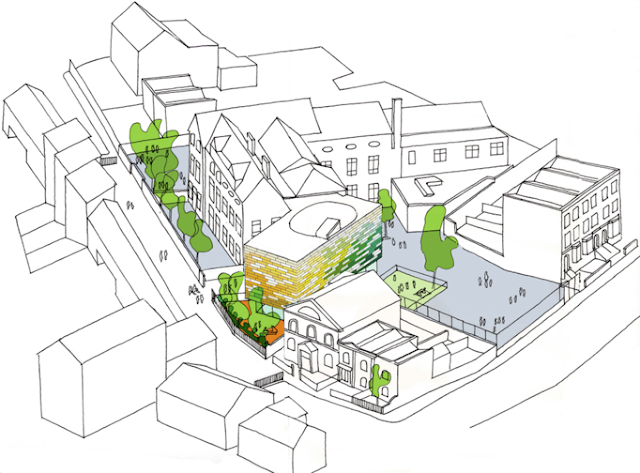The new building is pulled away from the flank wall to sit closely parallel with the neighbouring (Listed grade II*) Odd Fellows Hall. The resultant in-between space establishes a dramatic new entrance; and a triple height transparent atrium that bridges old and new. Stairs, lift and voids cleverly reconcile four contemporary storeys within the height of three Victorian floors. The classrooms are wrapped in a pixellated loop of glass. The colour spectrum and glazing ‘brick bond’ pattern boldly plays with the scale and materiality of the context. The facade works hard: solid, fritted and clear glass provide environmental control, internal felt pinboards display children’s work, changing views of the city are framed at heights to suit all ages.