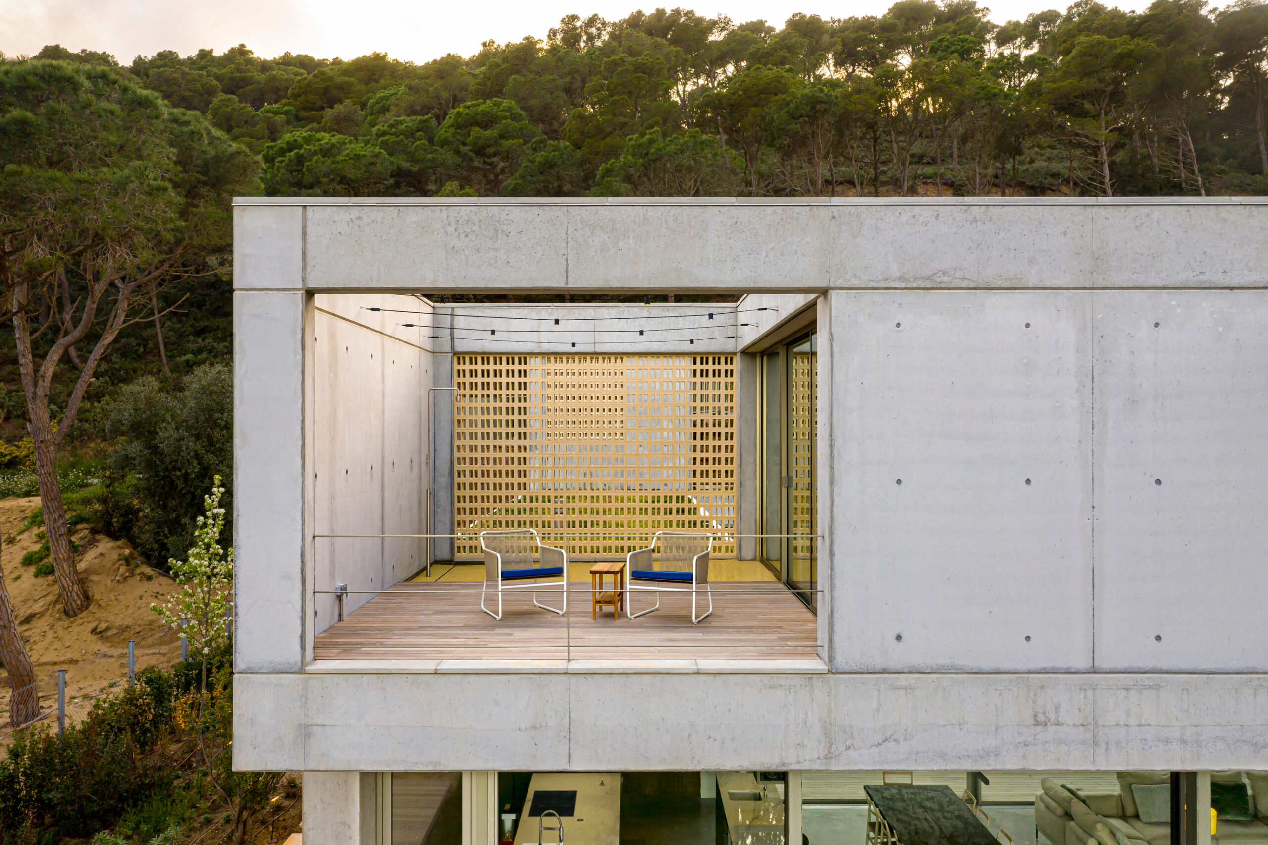 El volumen del dormitorio principal en planta inferior es usado como terraza del estar.
