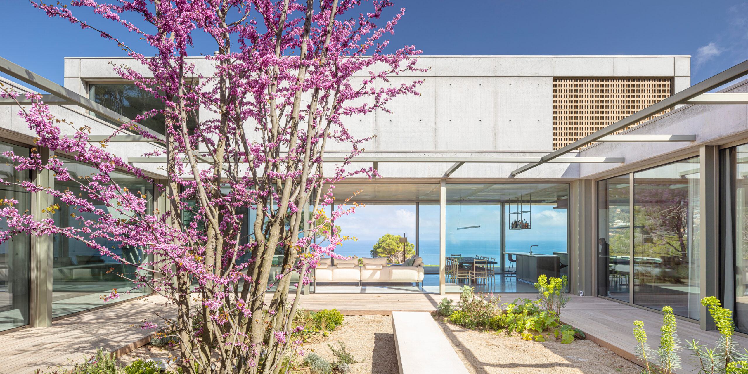 Se ha prestado máxima atención a la buena colocación de la casa en un terreno en pendiente paralelo al mar y con buena orientación solar.