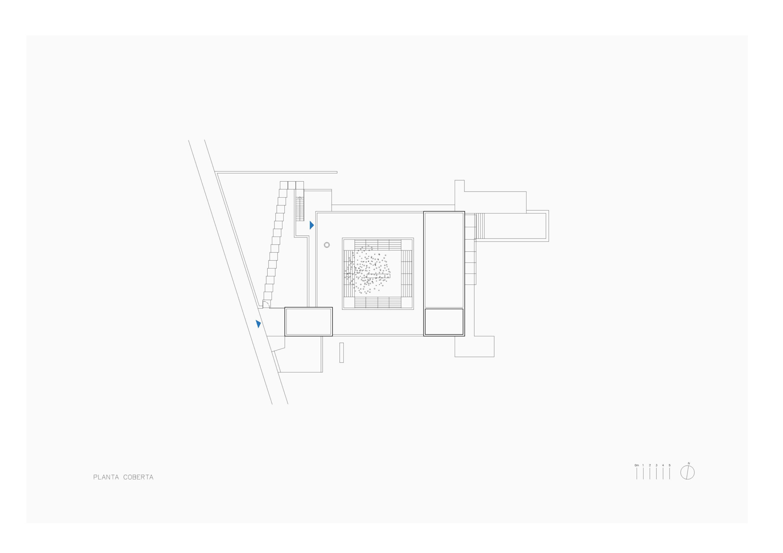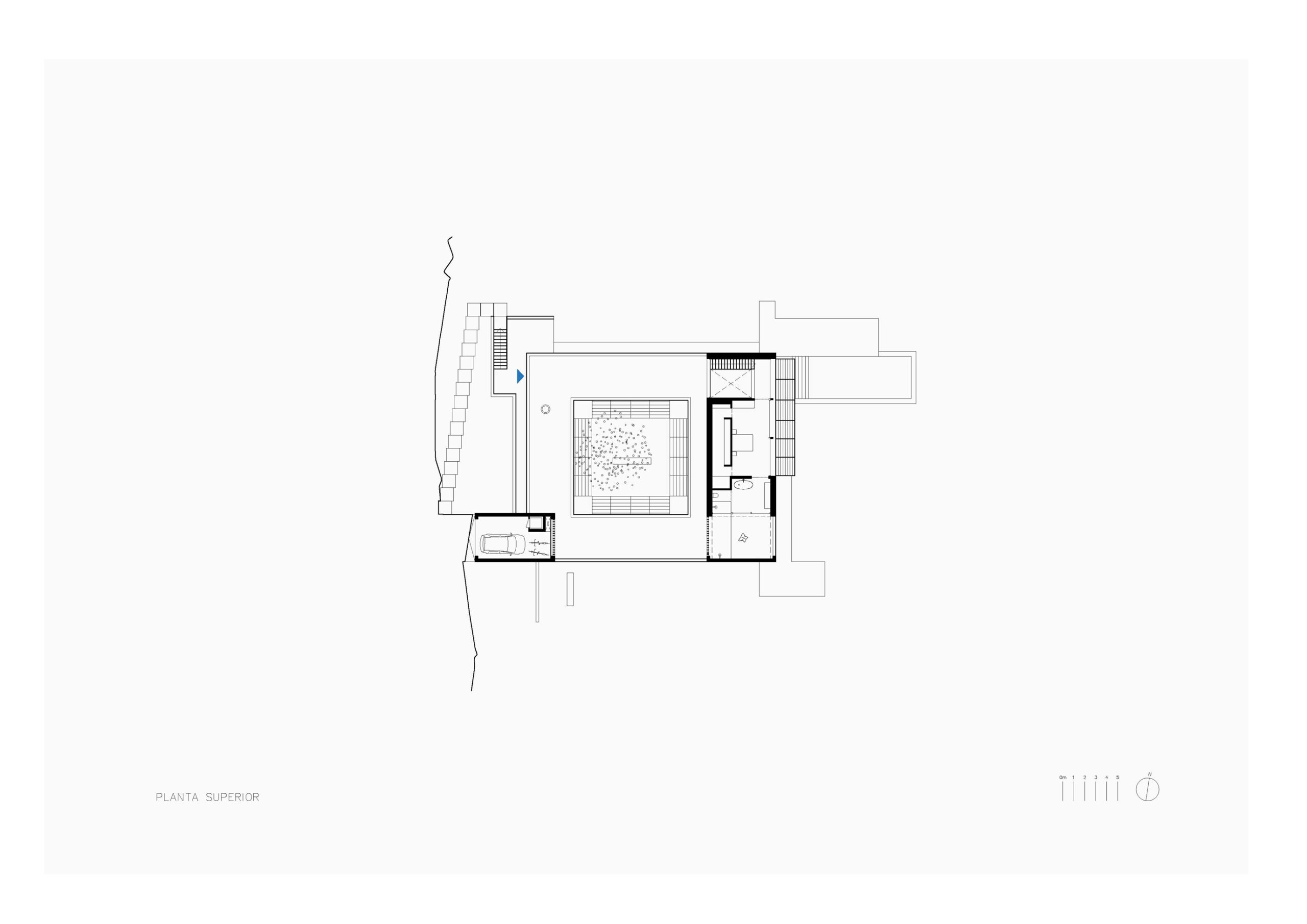 La edificiación se complementa con un edificio auxiliar a nivel del acceso establecido en una cota superior.