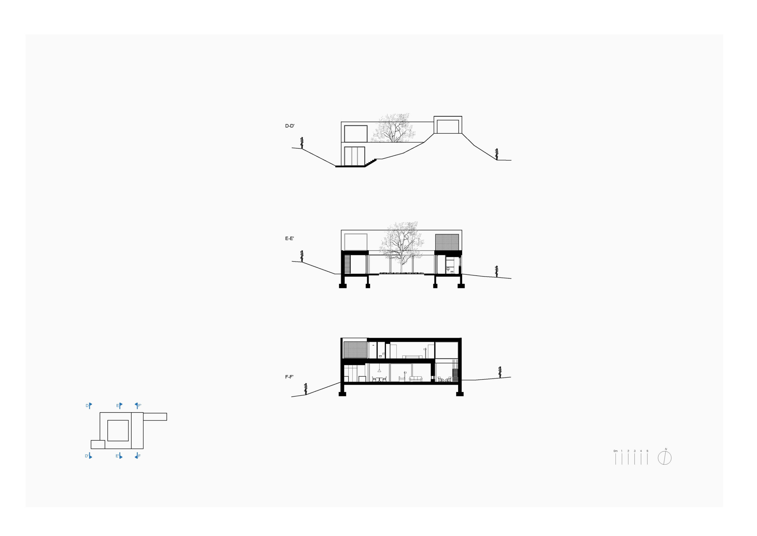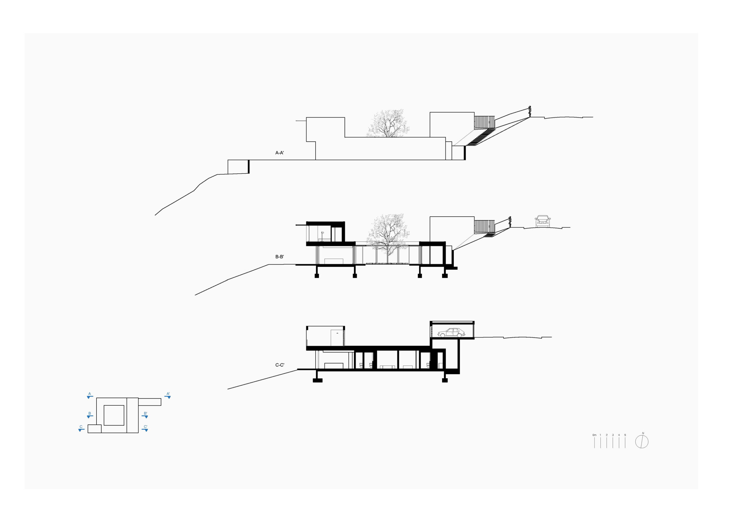 En consecuencia el proyecto se desarrolla de manera lineal ocupando la totalidad del frente marítimo y la acción principal consiste en la extensión de la casa en planta subterránea obteniéndose la máxima longitud posible.