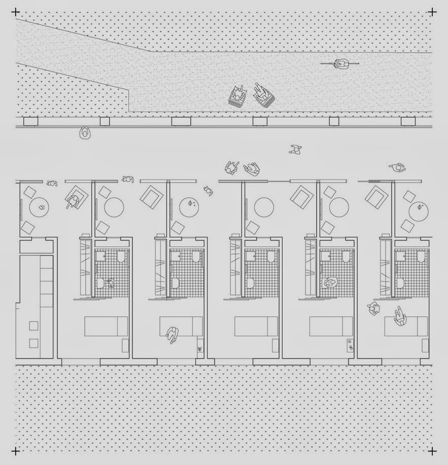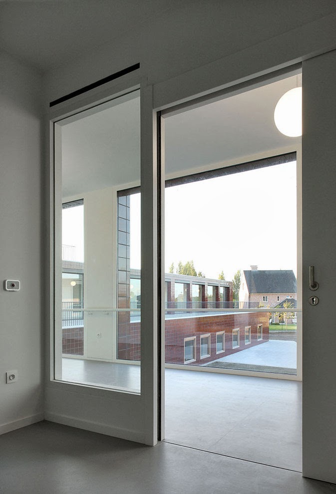 The sleeping area focuses on complete privacy, whilst the living room – giving onto the ample hallways- offers the exact opposite. Large sliding doors enable the patients to expand their private living area into the hallway, immersing themselves in the daily life of the home, following the activities of the staff, other residents, visitors or passers-by.