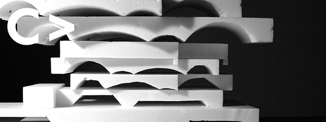 Geometría, estructura y construcción toman parte de un mismo concepto. Distintos porciones de espacios cilíndricos de diferente tamaño, se intersecan entre sí, liberando un espacio de mercado diáfano y luminoso, capaz de generar un paisaje interior de profundo valor espacial y cívico. La sección del volumen sustraído es la secuencia de bóvedas apoyadas en la parcela. Esta operación abstracta sobre el volumen inicial, permite una clara permeabilidad en el eje norte sur del edificio, poniendo en conexión directa no solamente el exterior con el interior, sino también el nuevo parque al norte de la parcela, con la ermita y la zona arqueológica, que de otra manera, quedaría cercada por los dos grandes volúmenes de los juzgados y del nuevo mercado.
