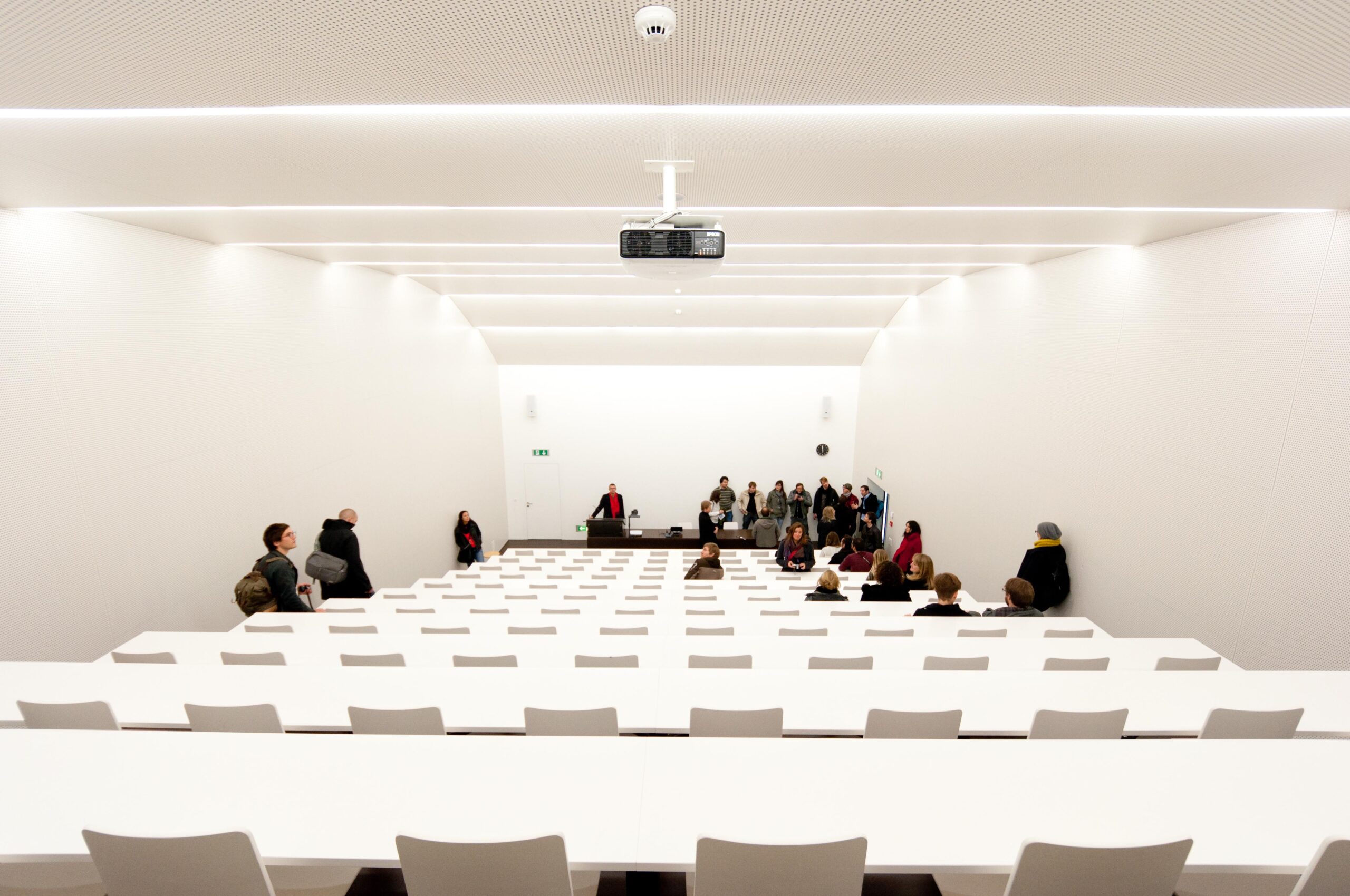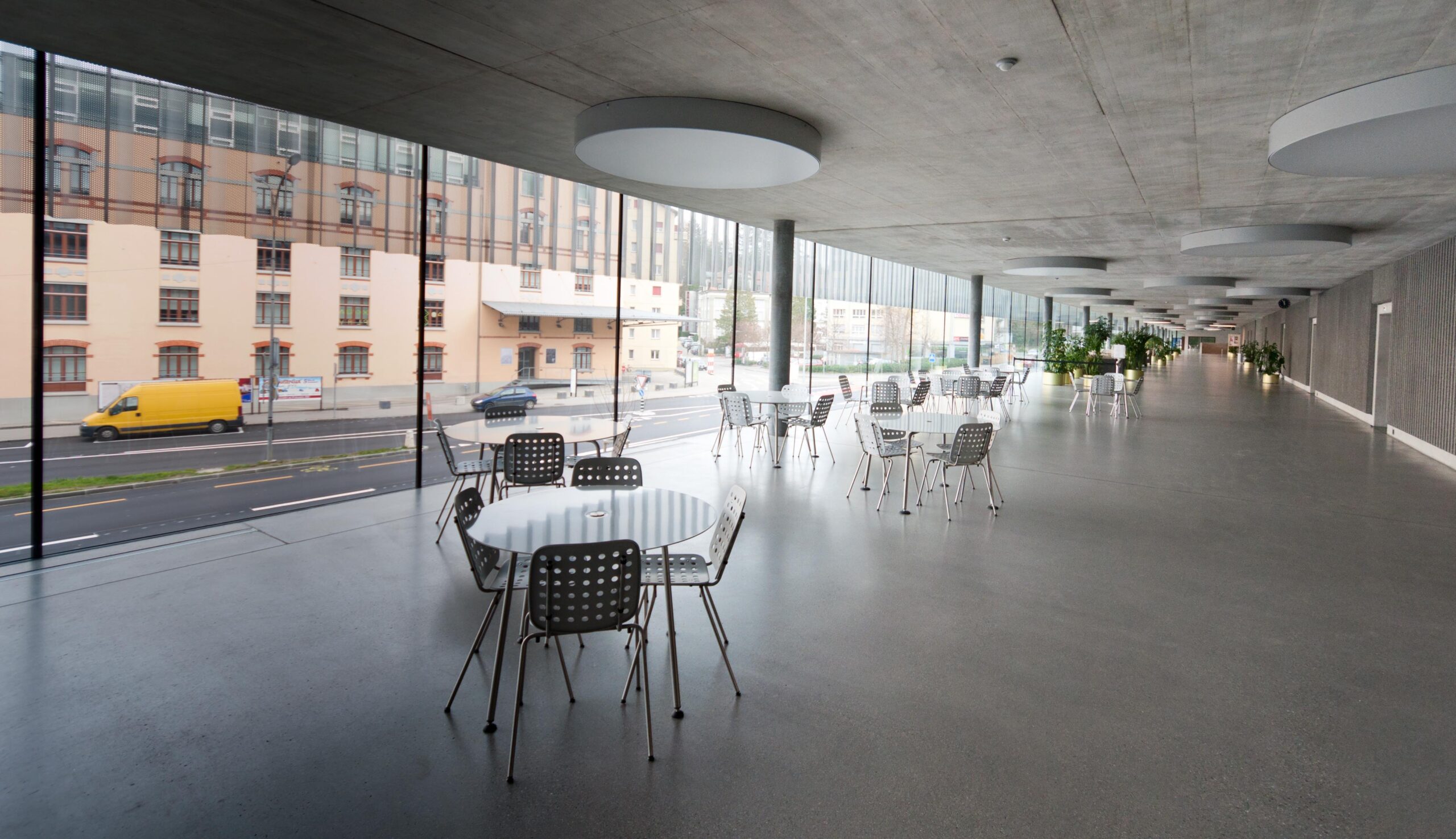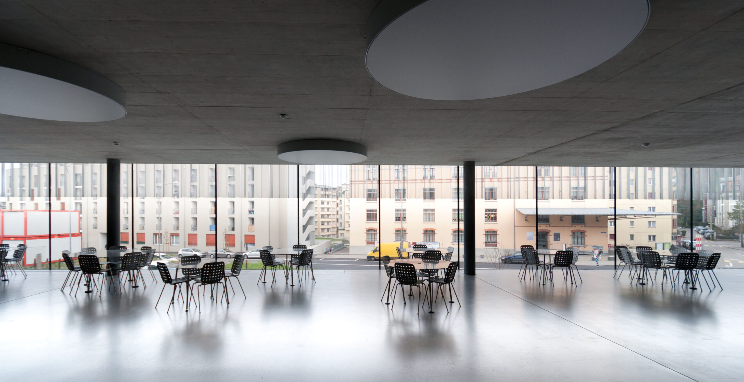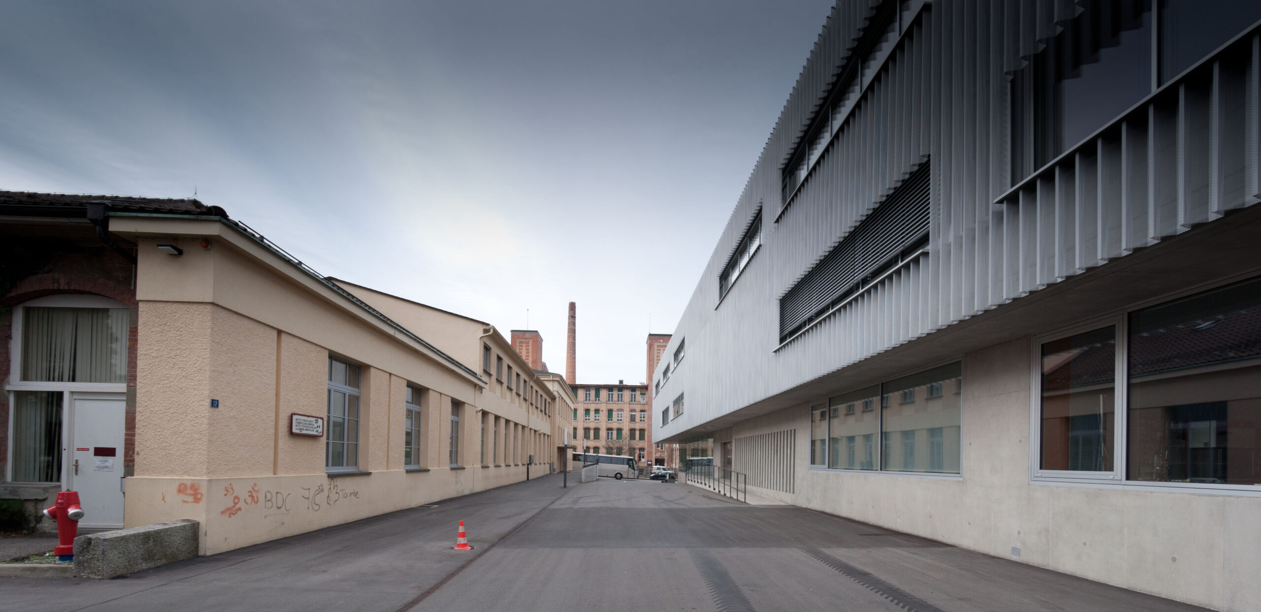 Graber Pulver intend with the striking gesture of linearly organized building provoke an industrial character. “The consistent cut throughout the length gives to the volume the peculiarity of a long metal profile or a workpiece. The long building has space for a clear organization, which varies from floor to floor because of the different programme requirements of the functional areas and their differentiated approach on the outside. ”