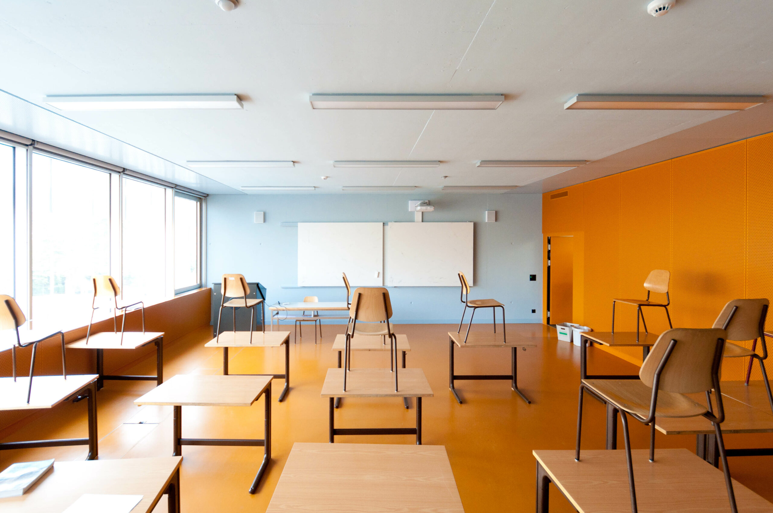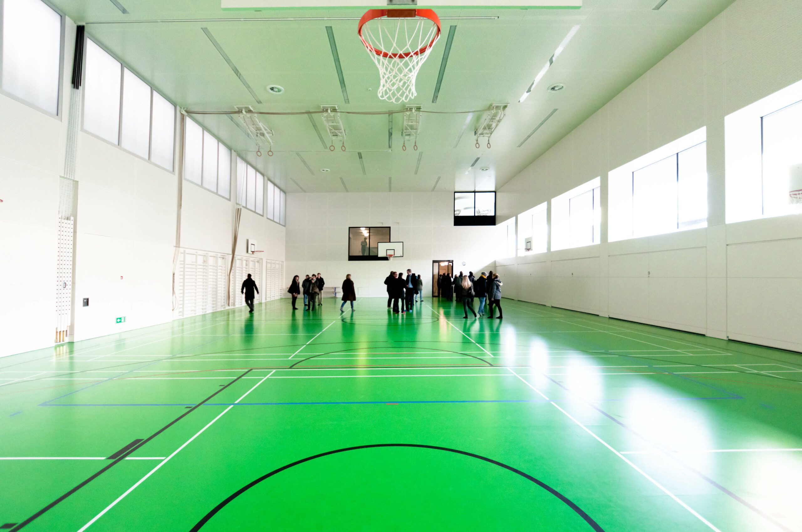 The programme is divided into four floors; the basement is devoted to the gym and the service infrastructure. Level 1 hosts the main entrance and parking, level 2, administration and services, Level 3 classrooms and level 4 the Workshops, benefiting from plenty of natural light. The gym and the auditorium are housed at the two ends of the building and can be independent of the school system be used externally.