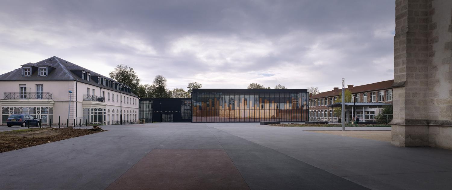 The subtle chequerboard arrangement of large bush-hammered and Cor-ten finish concrete slabs gives the square another dimension and highlights the entrances to the Town Hall and college. As a natural extension of the gymnasium, the esplanade reinforces the overall impression of harmony. One of this project’s keynotes is its energy-efficient conception. Built to Very High energy Performance (VHEP) standards, the building provides a high level of user comfort. Its insulated concrete walls help cooling in summer and limit heat loss in winter. Each room also has a nocturnal double-flux ventilation system that recovers energy from the air extracted. The façades are glazed with 2.28 m2, 44.2 “securit” panes on the outside and 8mm tempered glass on the inside, with a 14 mm anti-heat Argon gas infill. The building is connected to the town’s geothermal heating system, with a programme that heats spaces before use.