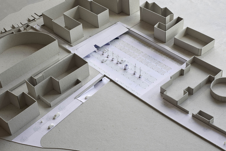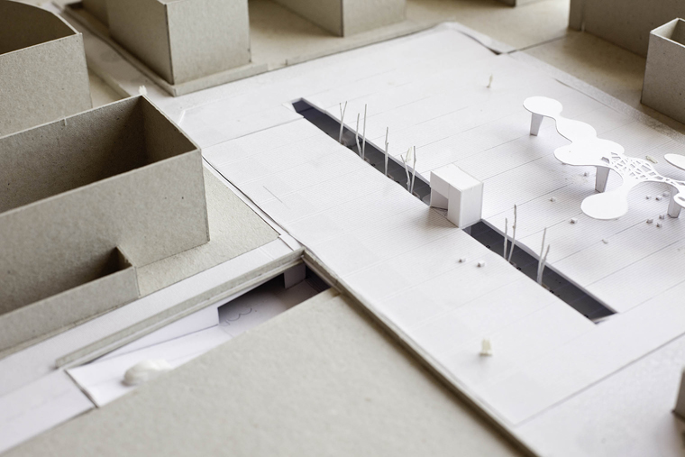 Estructura claramente el programa esforzándose en minimizar sus acciones. Igual hubiera estado bien repartir los patios de luz para generar una plaza más arbolada en superficie.