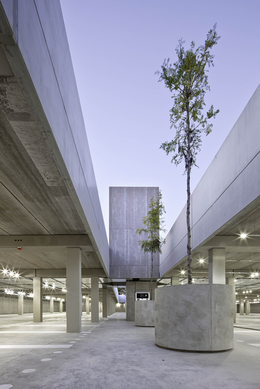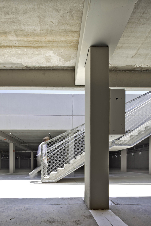 La estrategia de ventilación natural a través del patio longitudinal, así como haber optado por un sistema zonificado de iluminación por LED, optimizan la eficiencia energética del aparcamiento y reducen los costes de explotación.