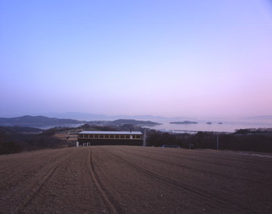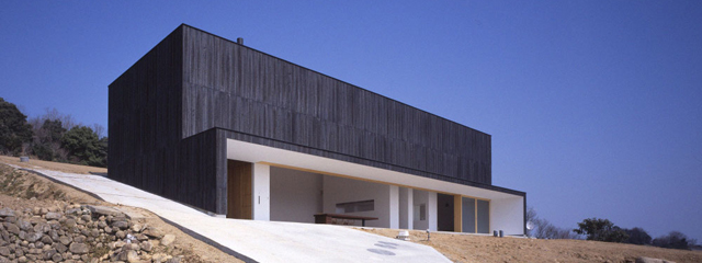 The scenery is excellent. Below is the port of Ushimado. The client is involved in instigating large art-related projects, and is known to be perfectionist. He doesn’t allow any objects which are not compatible with the space. There is nothing in this house. To be more precise, in the 6m-high dining / living room, there is only one huge, solid table. There is no sofa or bookshelf. Chairs are lined up along on the table, but only on the side facing the view. The alignment of the table commands a view of Ushimado Bay. The client still keeps his own daily life like an artwork.