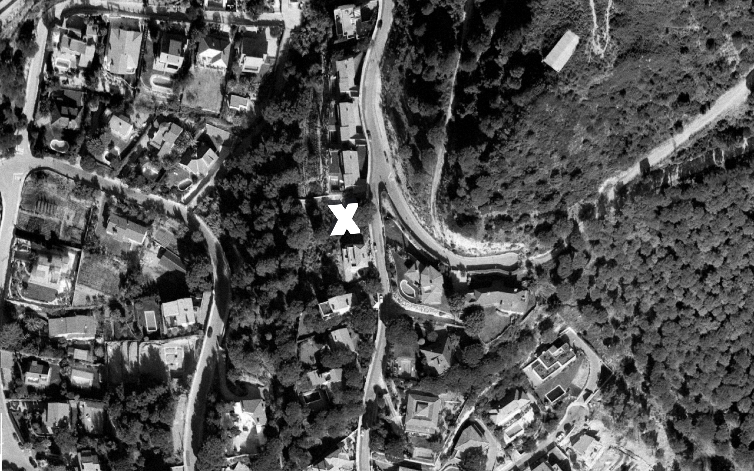 Suposo que el projecte respon a les necessitats dels propietaris, però em suposa un conflicte intentar entendre, dins de l’abundància, el perquè de tot plegat. Si la casa es diu X, és perquè ja s’ho deia abans de començar. Estic convençut que aquesta forma ha suposat més problema que virtud en aquest emplaçament, i als fets em remeto: el mateix corsé de testers cecs els impedeix gaudir de les fantàstiques vistes del mar entre la vall que hi escola, qie ara només veuen des de la cantonada de la cuina, i parcialment. Si a darrera d’aquell sofá, hi hagués una vidriera (material que sobra en altres llocs de la casa!), seria el millor lloc de la casa (en quant a vistes..) la coberta és accessible, però invivible (ni porxos ni res perquè ja han acabat l’edificabilitat en les dues plantes inferiors, i podria fins i tot contenir la piscina, doncs el formigó-miracle segur que ho aguanta. I al contrari es col·loca la piscina quatre plantes más avall, triturant qualsevol pi germà que apareix a la foto aèria que marca la X (qual plànol de bombardeig inminent – bomba sobre el territori) del que amb tanta follia es salva just a l’accés…Personalment, em falta taula de marbre per poder desplegar plànols i intentar entendre que el que expliquen en la memòria d’aquest projecte és el que han aconseguit aquí.