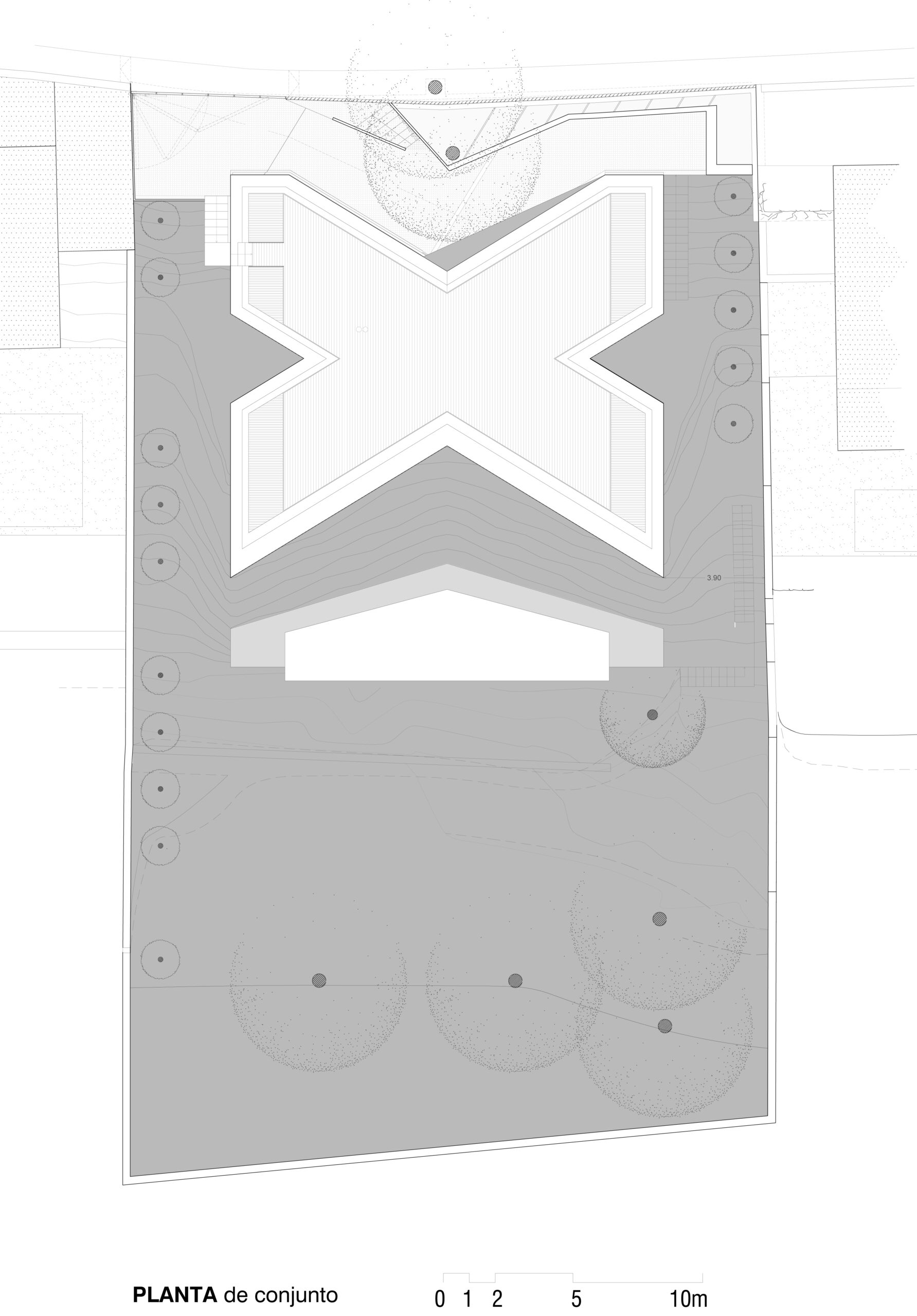 Tampoc he sabut veure cap foto des de la part interior de l'”x” cap a l’exterior per a veure com els espais més aguts de la forma queden resolts, tan a nivell d’entregues com a nivell del propi espai.