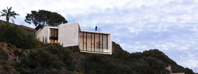 La casa se encuentra en la parte alta de una ladera del valle de Cabrils, en las afueras de Barcelona. El terreno de pendiente pronunciada y vistas remarcables tiene el acceso desde una única calle situada en la parte superior del terreno; la localización de la casa en el lugar responde a una voluntad de minimizar la excavación y posibilitar dentro de lo factible el uso de la parte no construida de la propiedad. El acceso a la casa, se encuentra deprimido dos metros respecto a la cota de la calle, enfatizando con sus muros totalmente ciegos la voluntad de incrustarse al terreno y de desaparecer respecto a la calle, mientras se priorizan las fachadas abiertas al valle. La casa consta de dos plantas. La planta superior, más allá de albergar un garaje y de permitir el acceso a la vivienda, se plantea como una suite privada de los propietarios de la casa: habitación principal, con su baño y vestidor, y un estudio. La planta inferior distingue una parte frontal de carácter totalmente abierto y público, articulado en una sala de estar en doble espacio y un comedor-cocina que se desarrollan alrededor de una gran mesa de mármol de ocho metros de largo; en la parte posterior de la vivienda se localizan las habitaciones y zonas de servicio, dándoles a través de los patios vistas directas sobre el valle, el mar y la montaña.