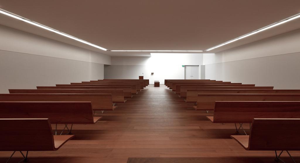 ¡Qué novedoso!!! Una capilla-SALA DE ESPERA (¿es posible hacer una capilla más fría y anodina?)