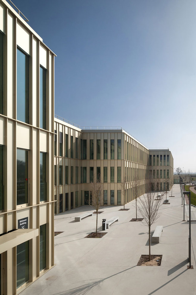 Encuentro más interesante la Ciudad de la Justicia. Éste es como el hermano pequeño de ésta que se parece, pero no brilla. Creo que la repetición del módulo hasta el hastío en la Ciudad de la Justicia funciona gracias al contexto de periferia y falto de carácter donde se inserta, además de una composición de volúmenes preciosa y acertada a nivel urbanístico. Aquí, donde el contexto es mucho mas natural y de poca densidad por lo que puedo observar en las fotos, creo que se podría haber hecho algo menos homogéneo y repetitivo. Creo que no aprovecha la “libertad” del emplazamiento y se auto impone unas reglas que no creo funcionen tan bien como en el caso ya mencionado. De todas maneras, como casi siempre en estos grandes estudios; el diseño del detalle, la calidad del espacio público e interior, es excelente. Me gustaría ver la documentación gráfica de este proyecto.
